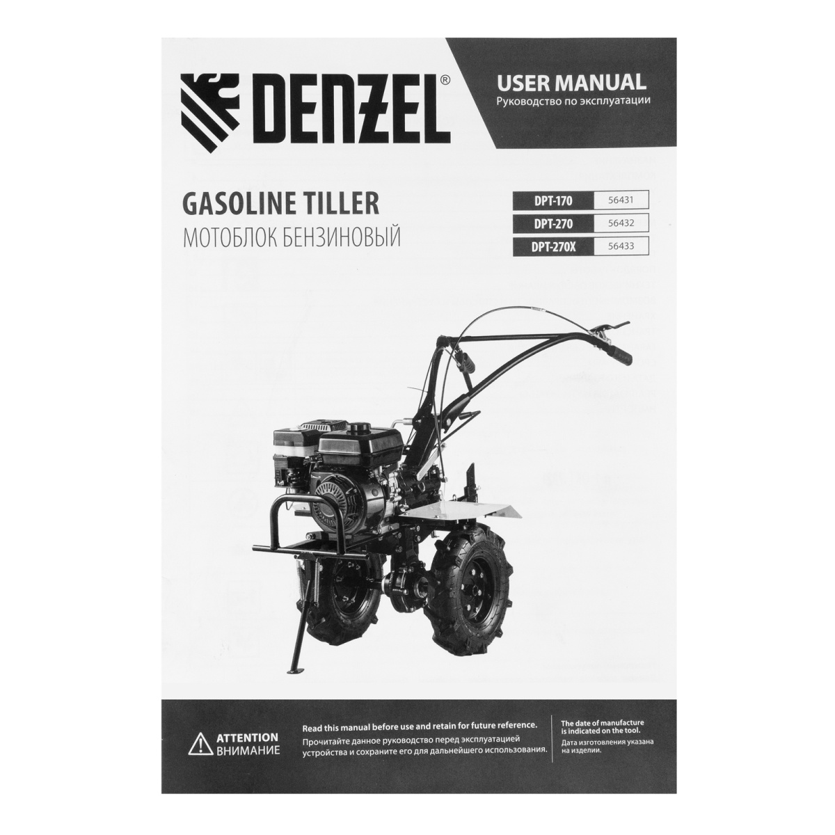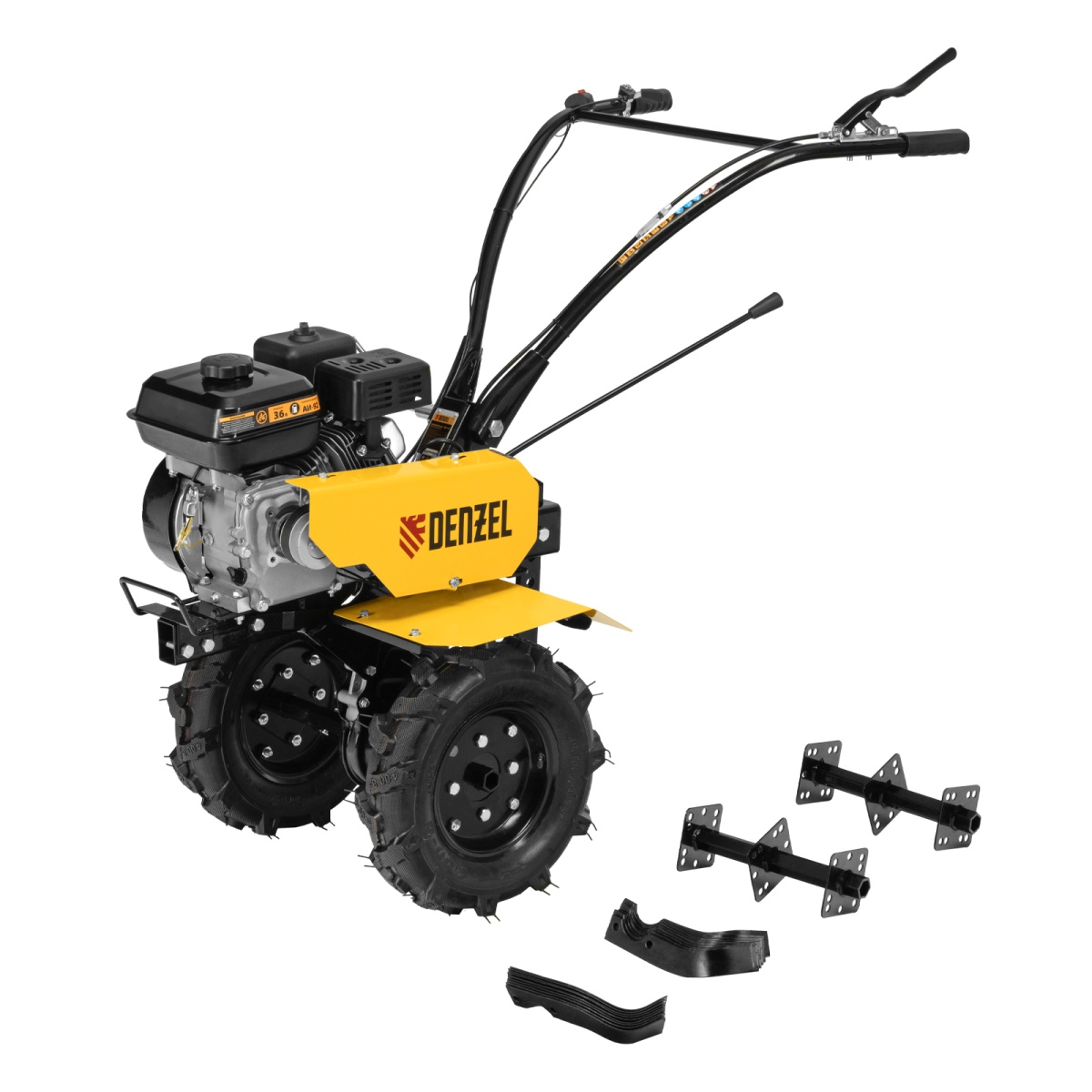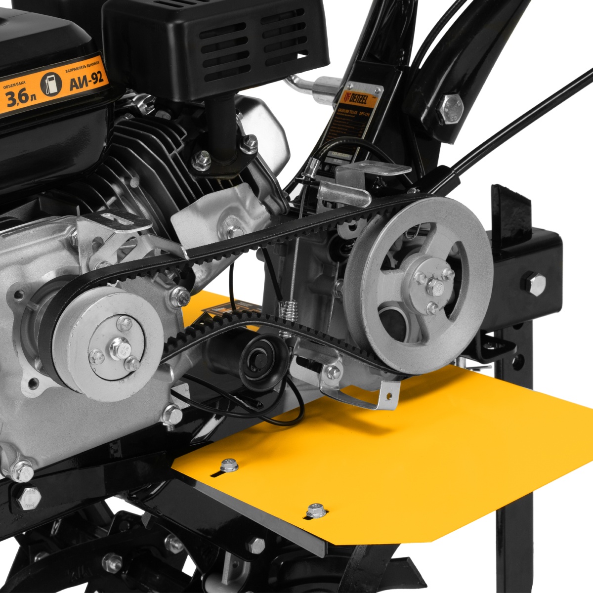 Купить Мотоблок DPT-170, 7 л.с., ремен.сцеп, шир 85 см, глуб 35 см,фрез 3х3,ШОМ,скор 2В/1Н,кол 8" Denzel V4118 по лучшей цене с доставкой - интернет магазин №1 в России