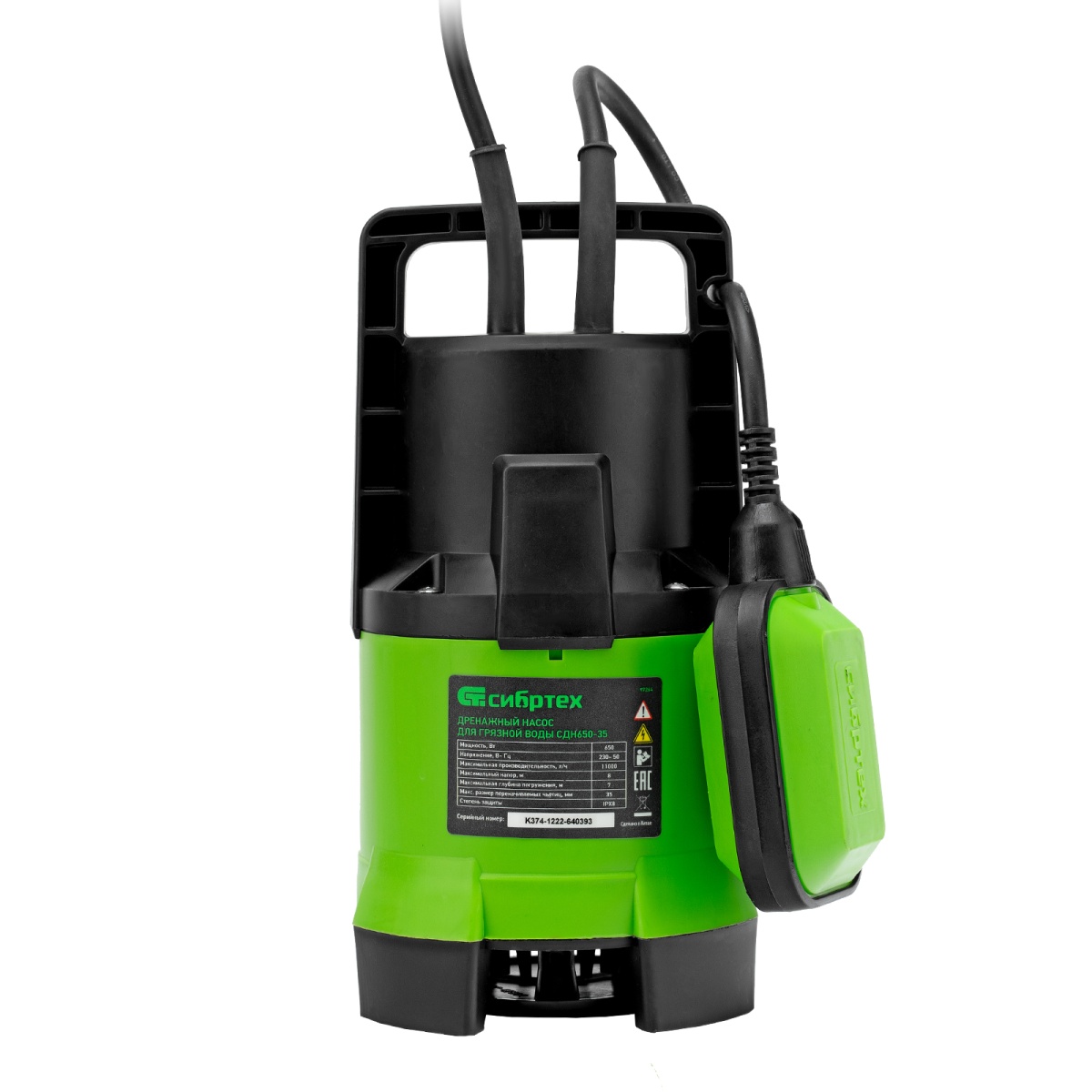Купить Дренажный насос для грязной воды СДН650-35, 650 Вт, напор 8 м, 11000 л/ч Сибртех V1782 по лучшей цене с доставкой - интернет магазин №1 в России