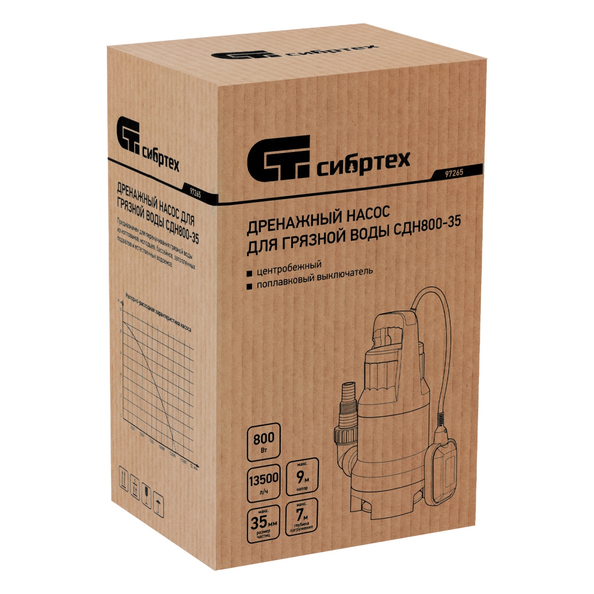 Купить Дренажный насос для грязной воды СДН800-35, 800 Вт, напор 9 м, 13500 л/ч Сибртех V1783 по лучшей цене с доставкой - интернет магазин №1 в России