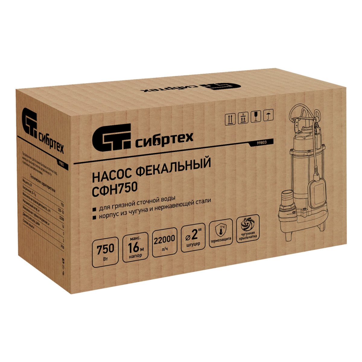 Купить Фекальный насос СФН750, 750 Вт, напор 16 м, 22000 л/ч Сибртех V7504 по лучшей цене с доставкой - интернет магазин №1 в России