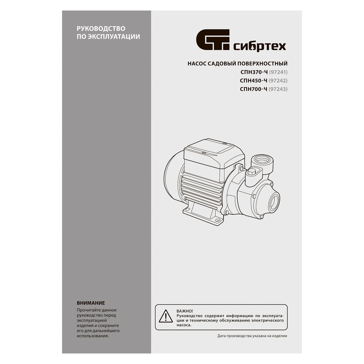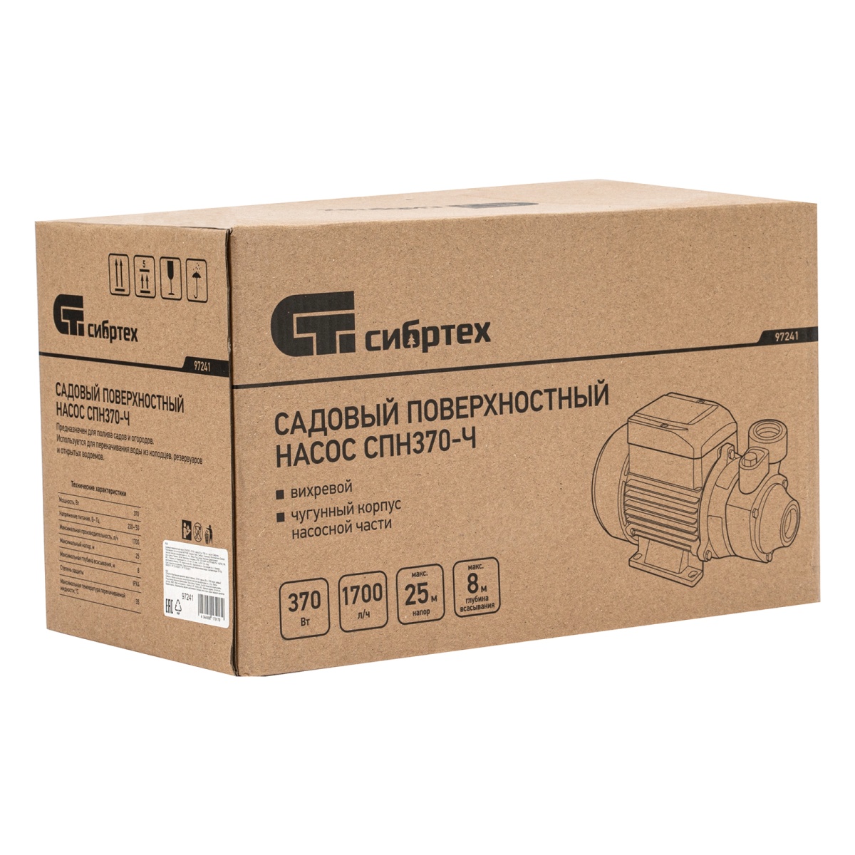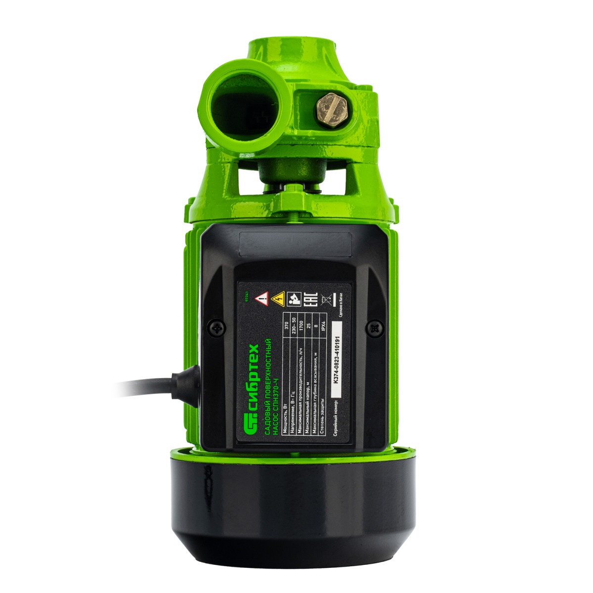 Купить Садовый поверхностный насос СПН370-Ч, 370 Вт, напор 25 м, 1700 л/ч, чугун Сибртех V6184 по лучшей цене с доставкой - интернет магазин №1 в России