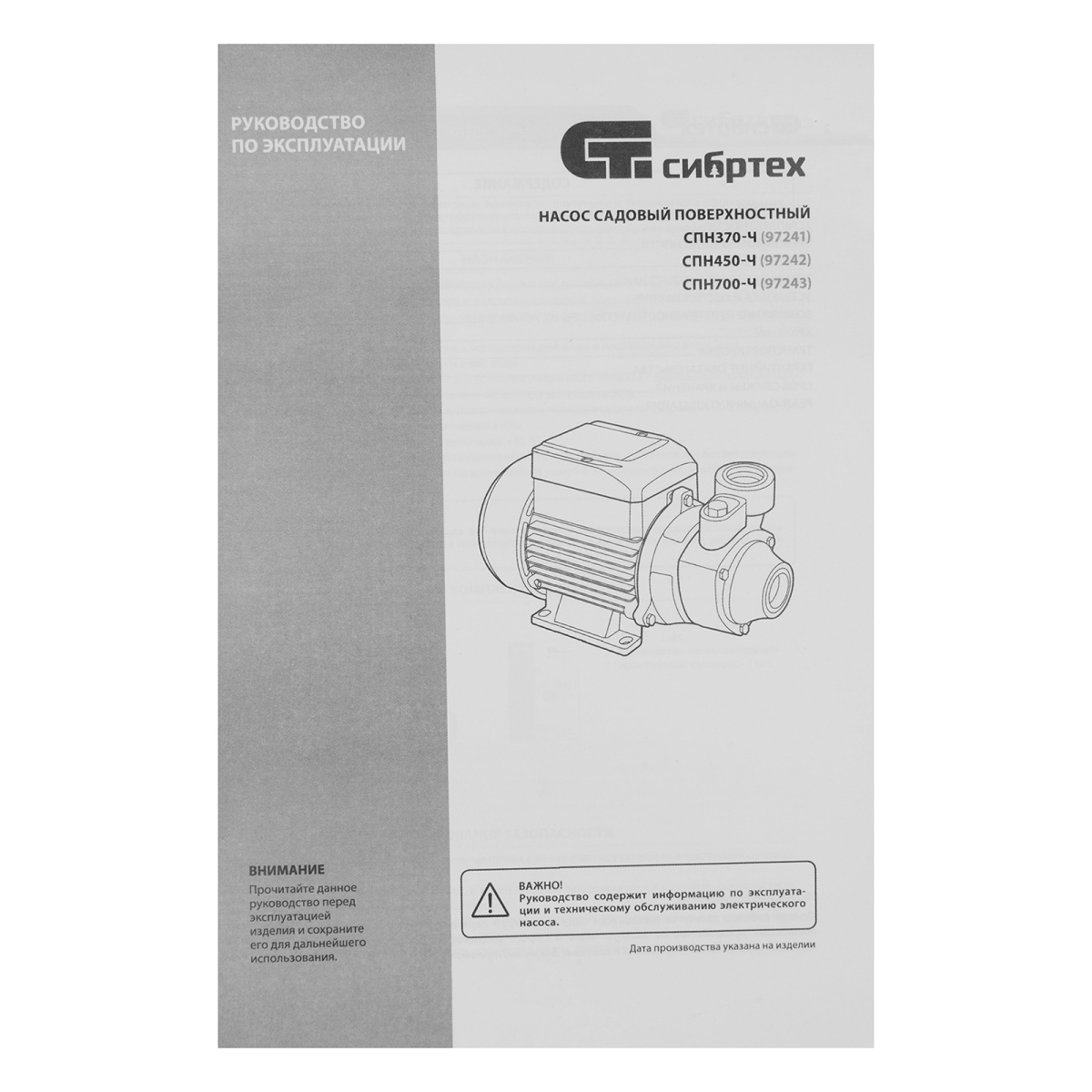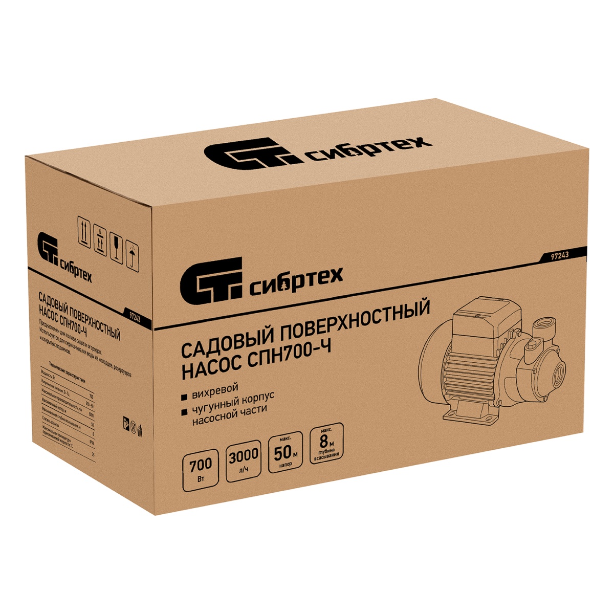 Купить Садовый поверхностный насос СПН700-Ч, 700 Вт, напор 50 м, 3000 л/ч, чугун Сибртех V6187 по лучшей цене с доставкой - интернет магазин №1 в России