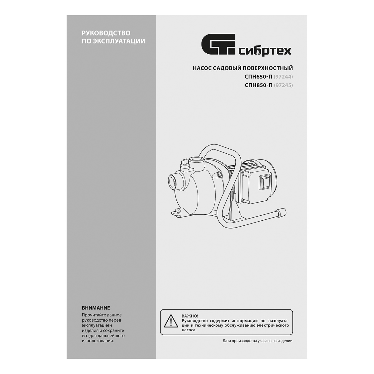 Купить Садовый поверхностный насос СПН850-П, 850 Вт, напор 42 м, 3500 л/ч, пластик Сибртех V6188 по лучшей цене с доставкой - интернет магазин №1 в России