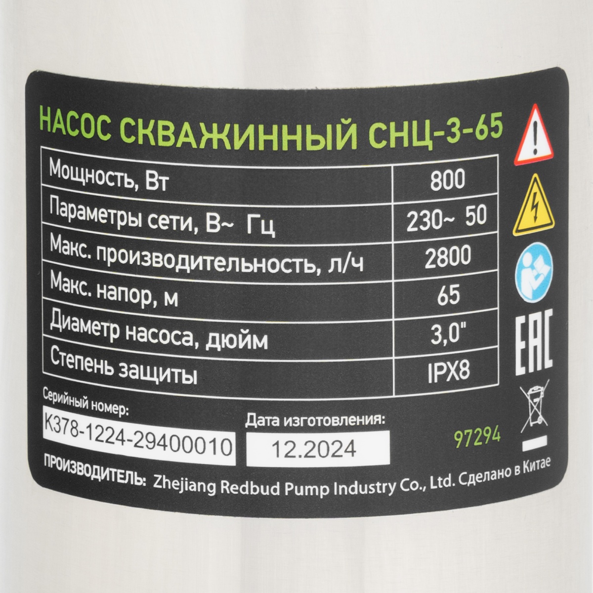 Купить Скважинный насос CНЦ-3-65, центробежный, диаметр 3", 800 Вт, 2800 л/ч, напор 65 м Сибртех V6689 по лучшей цене с доставкой - интернет магазин №1 в России