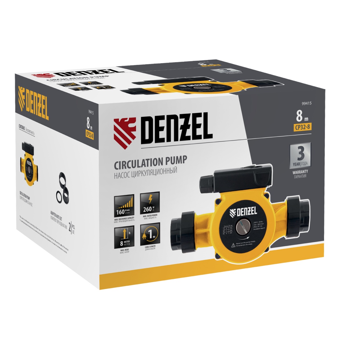 Купить Циркуляционный насос CP32-8, напор 8 м, 160 л/мин, 1 м кабель, монт. длина 180 мм Denzel V7555 по лучшей цене с доставкой - интернет магазин №1 в России
