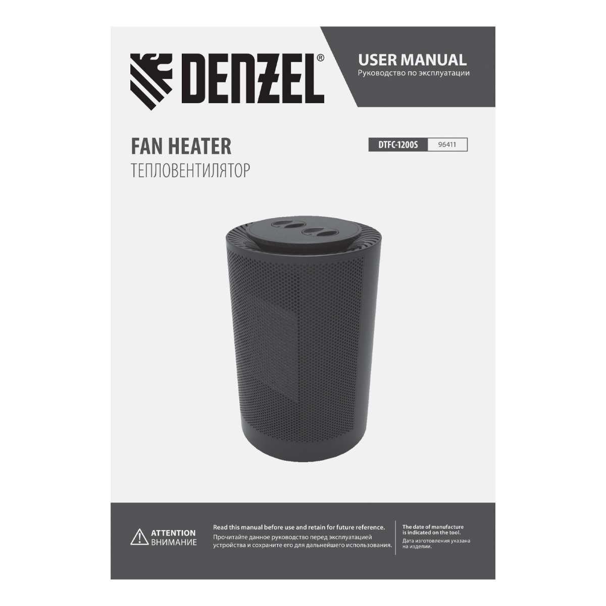 Наличие клапана для сброса давления Тепловентилятор керамический DTFC-1200S, вращение, 3 реж., вент., нагрев 600/1200 Вт Denzel