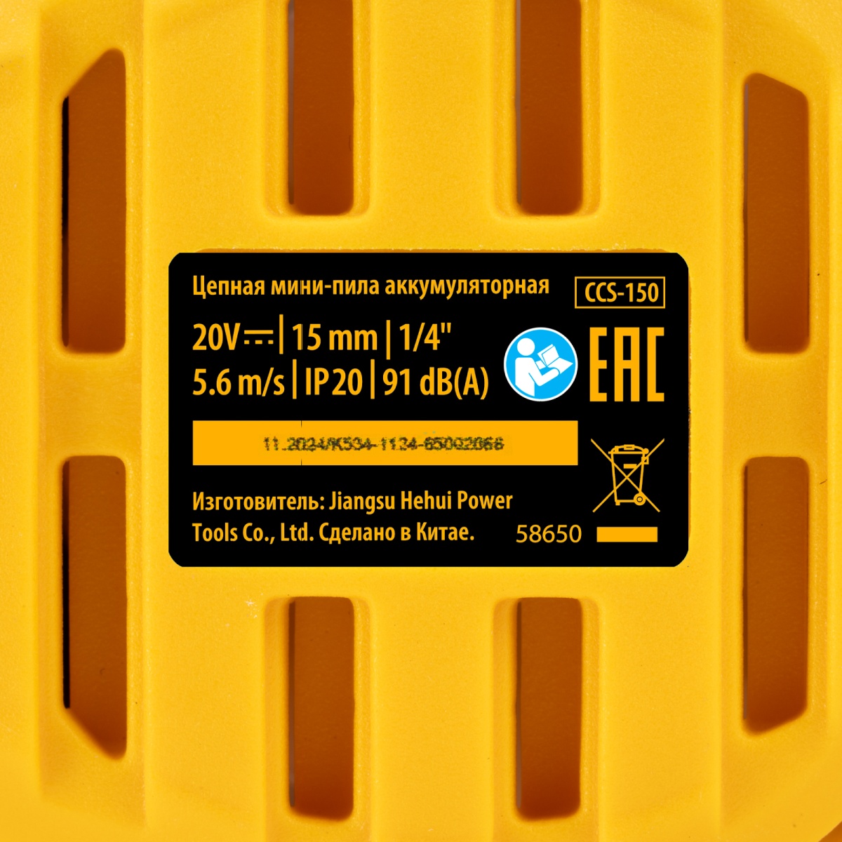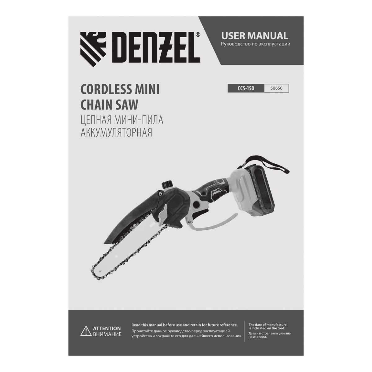 Купить Цепная мини-пила аккумуляторная бесщет., CCS-150, шина 150 мм, Li-Ion, 20 В Denzel V7540 по лучшей цене с доставкой - интернет магазин №1 в России