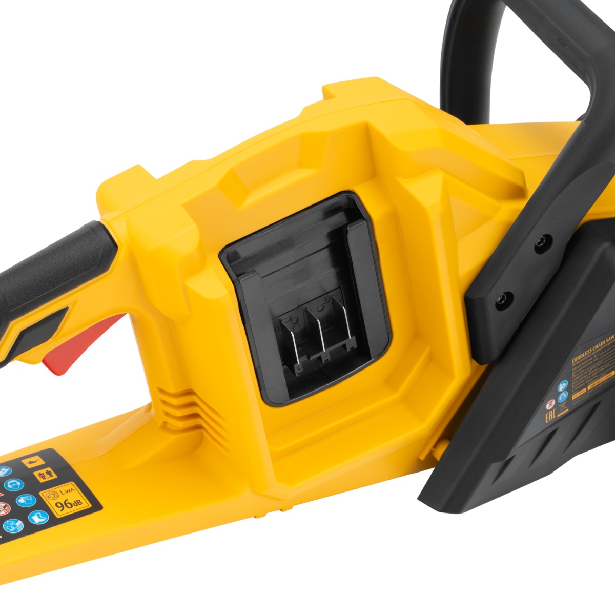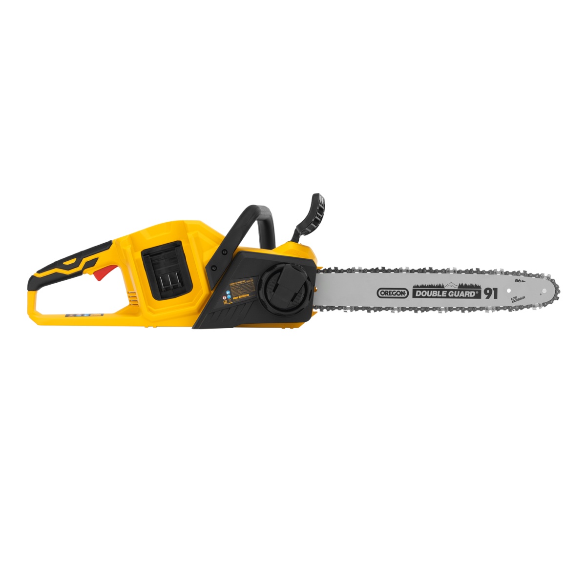 Наличие клапана для сброса давления Цепная пила аккумуляторная бесщет. RCS400-36-0, Li-ion, 36 В, шина 400 мм Denzel