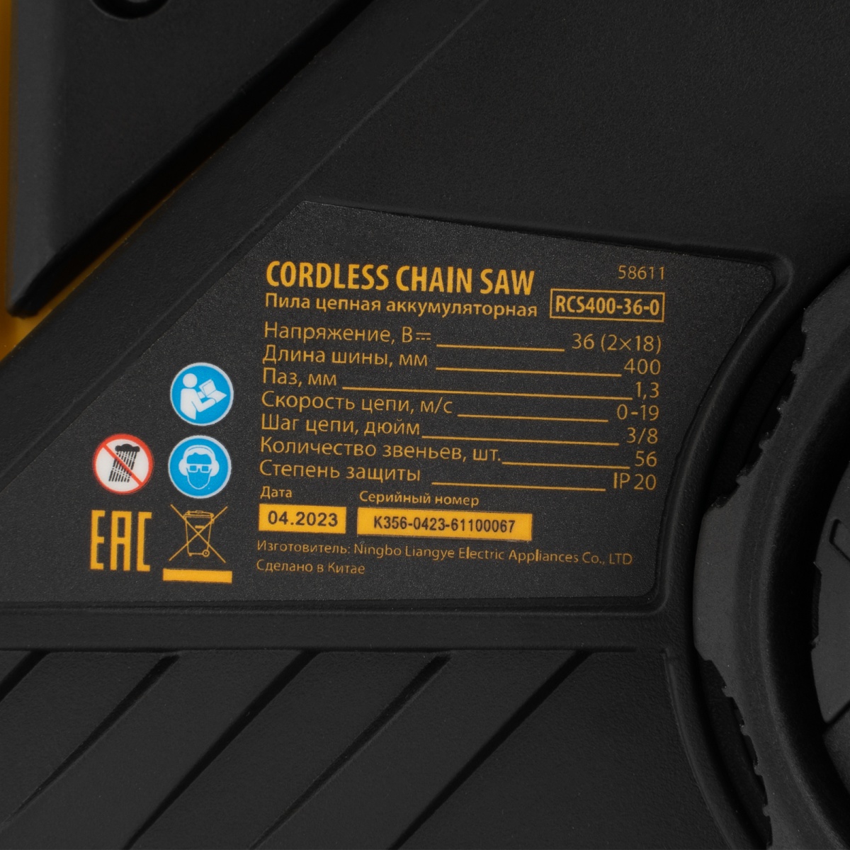 Купить Цепная пила аккумуляторная бесщет. RCS400-36-0, Li-ion, 36 В, шина 400 мм Denzel V7542 по лучшей цене с доставкой - интернет магазин №1 в России