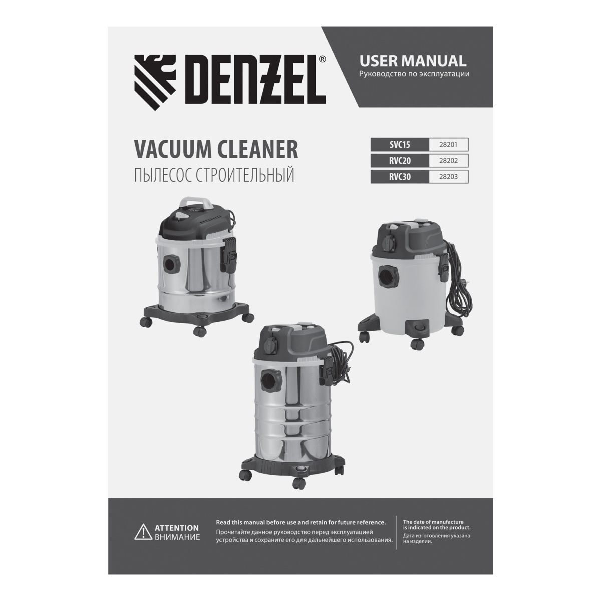 Купить Пылесос строительный RVC20, 1400 Вт, бак 20 л, шланг 3 м, розетка с автосинхр. Denzel V5903 по лучшей цене с доставкой - интернет магазин №1 в России