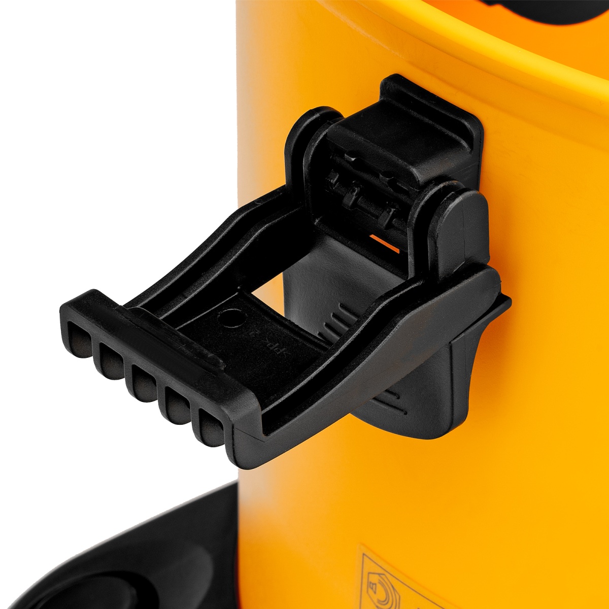 Наличие клапана для сброса давления Пылесос строительный RVC20, 1400 Вт, бак 20 л, шланг 3 м, розетка с автосинхр. Denzel