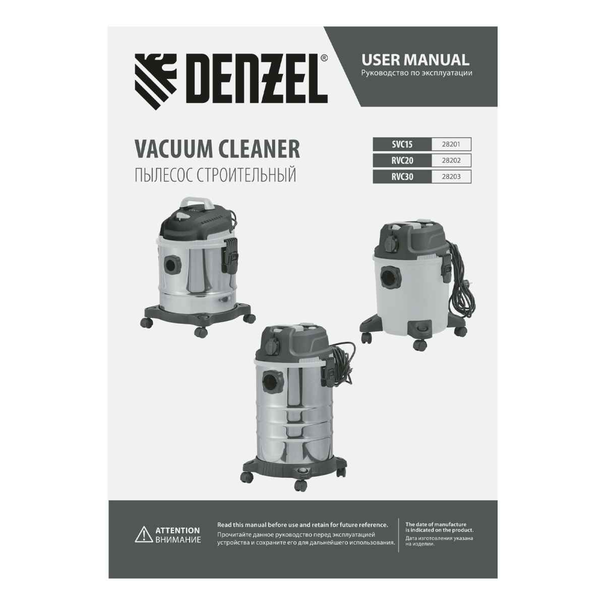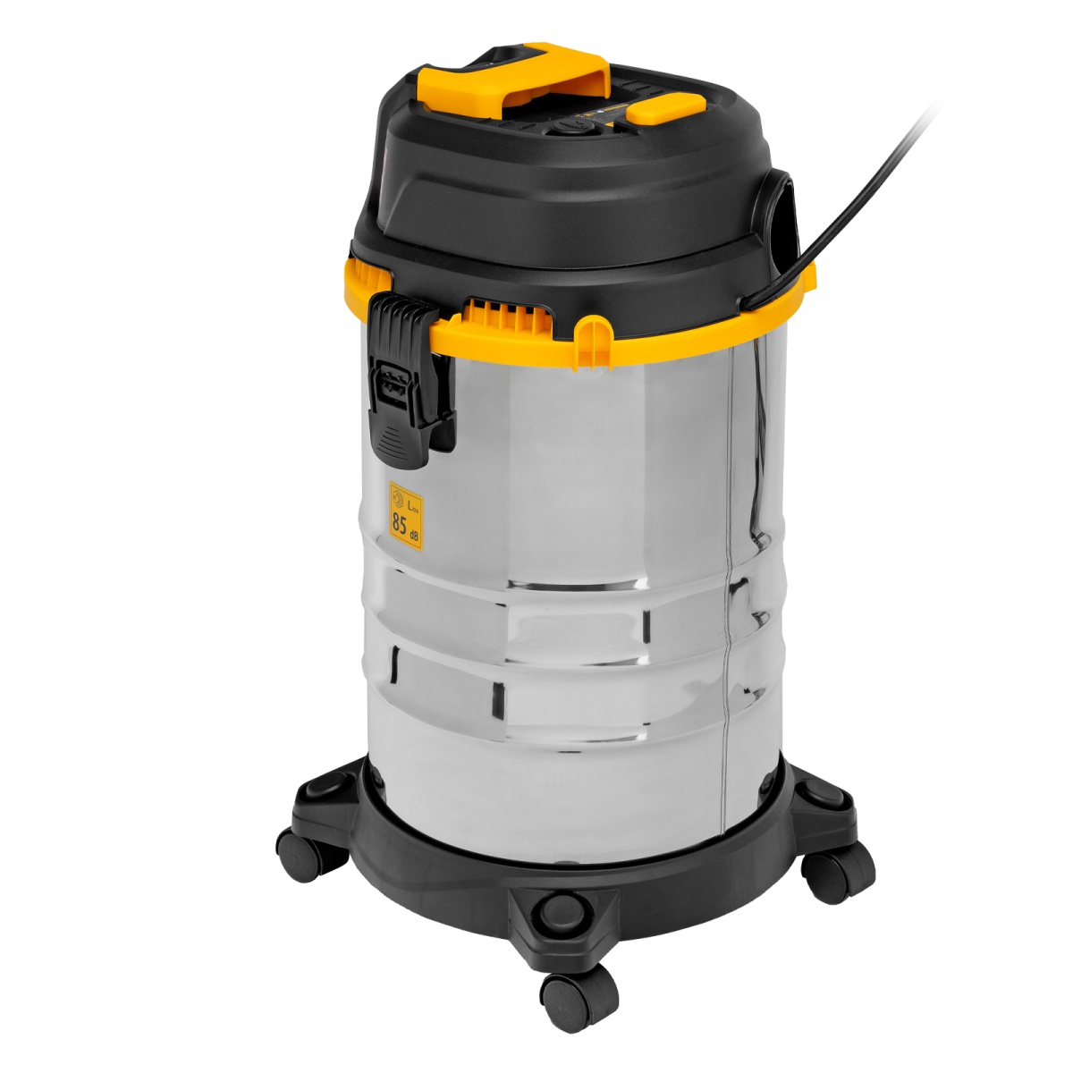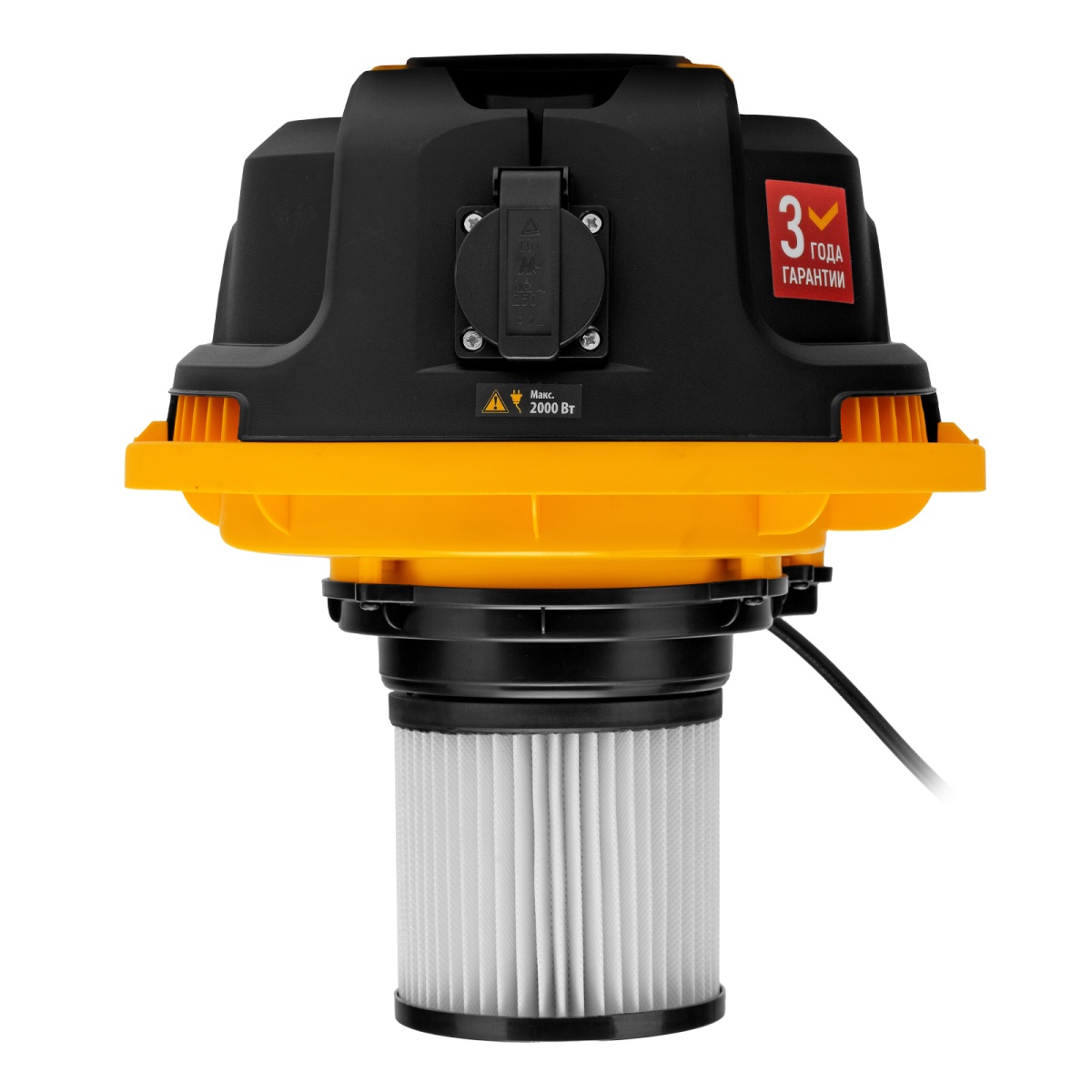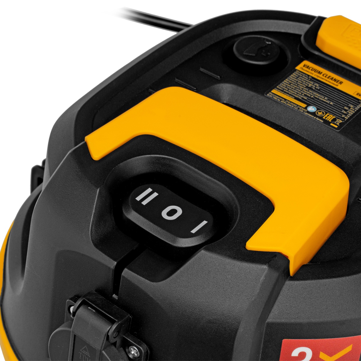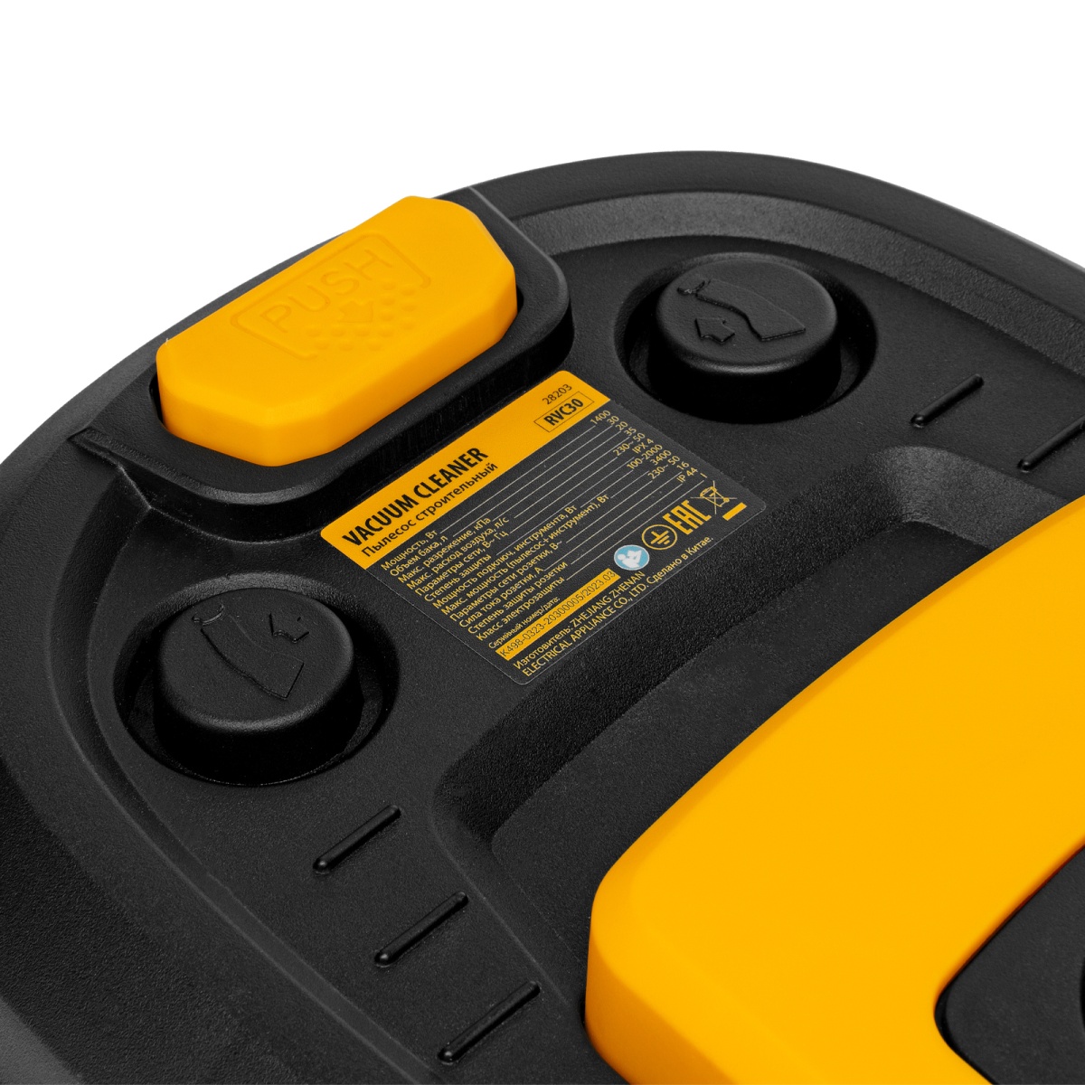 Наличие клапана для сброса давления Пылесос строительный RVC30, 1400 Вт, бак 30 л, шланг 3 м, розетка с автосинхр. Denzel