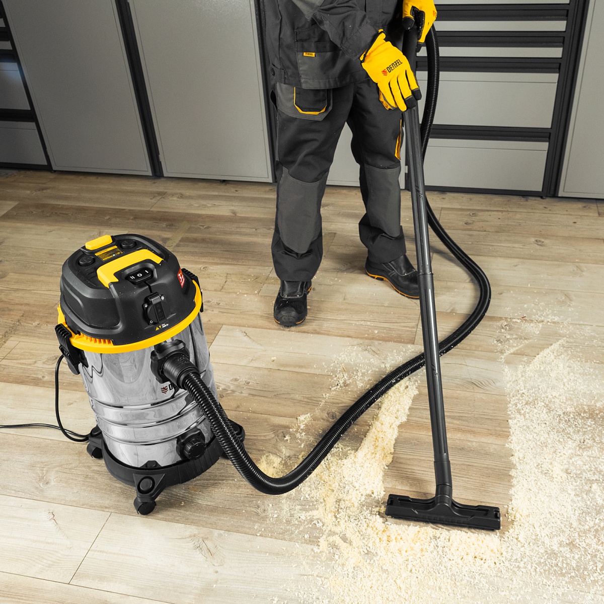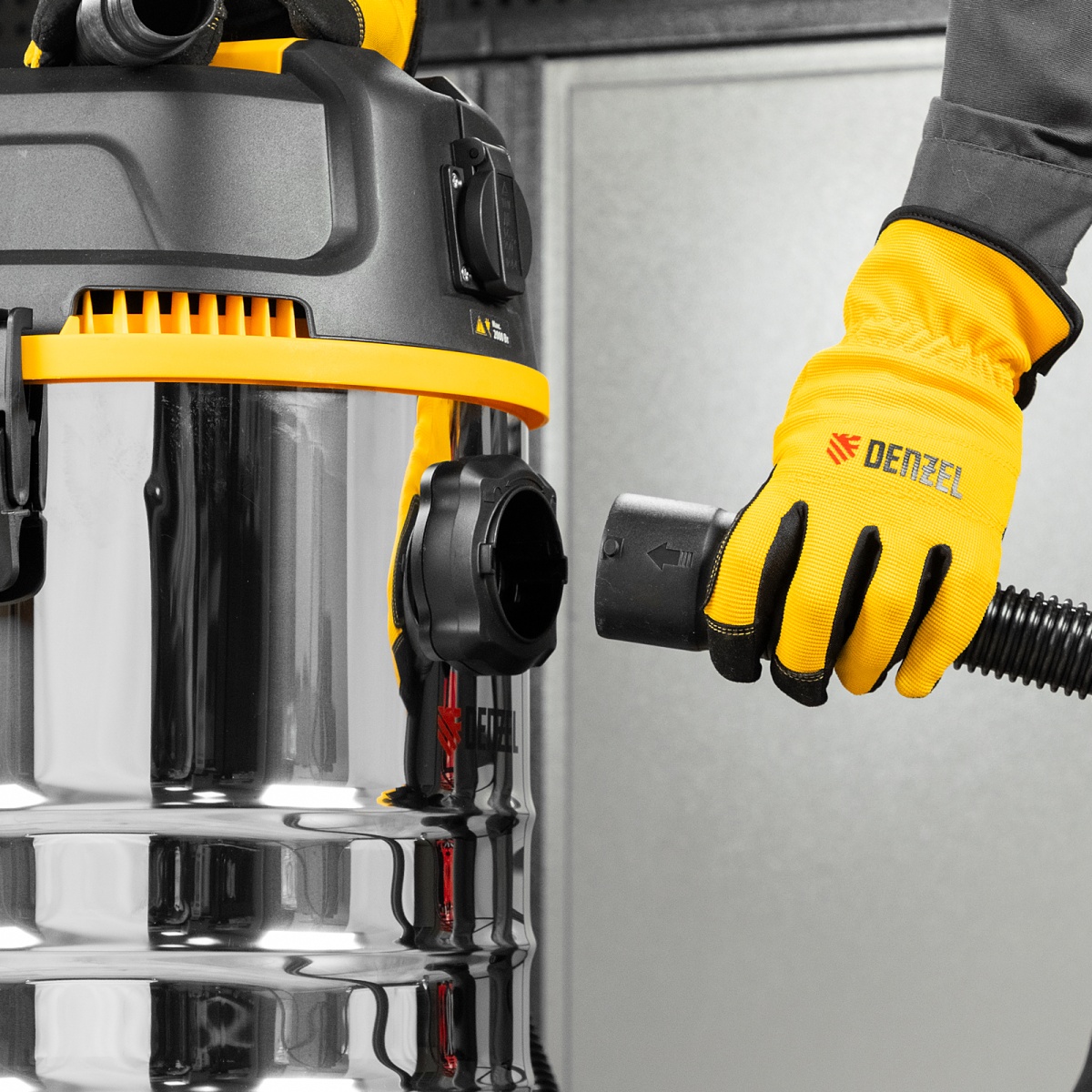 Пылесос строительный RVC30, 1400 Вт, бак 30 л, шланг 3 м, розетка с автосинхр. Denzel