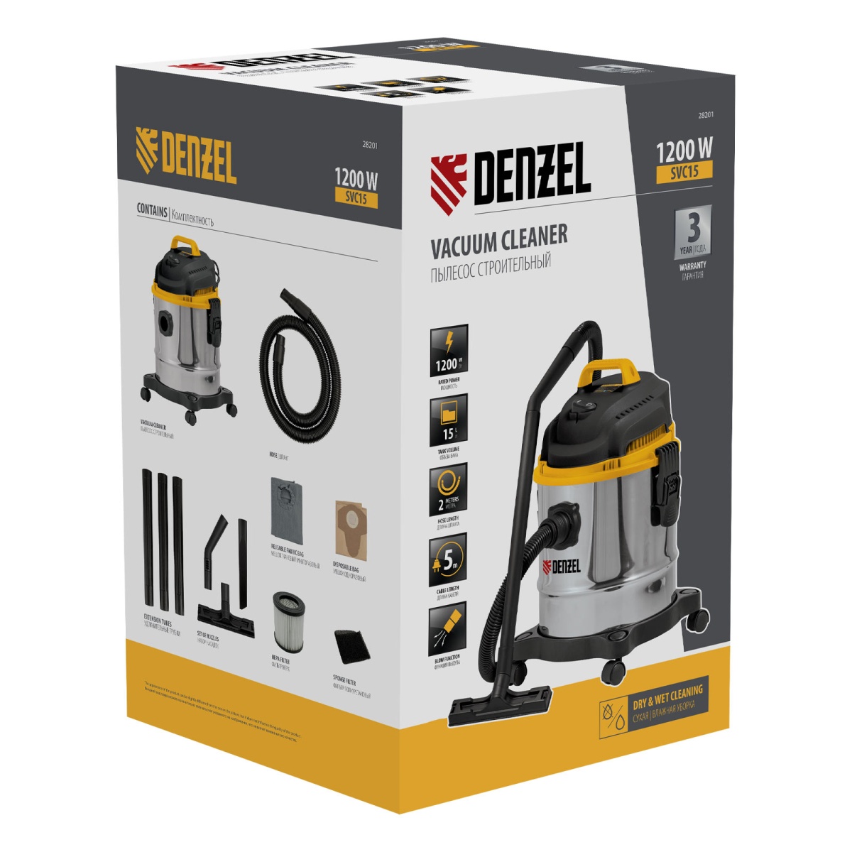 Купить Пылесос строительный SVC15, 1200 Вт, бак 15 л, шланг 2 м Denzel V5905 по лучшей цене с доставкой - интернет магазин №1 в России