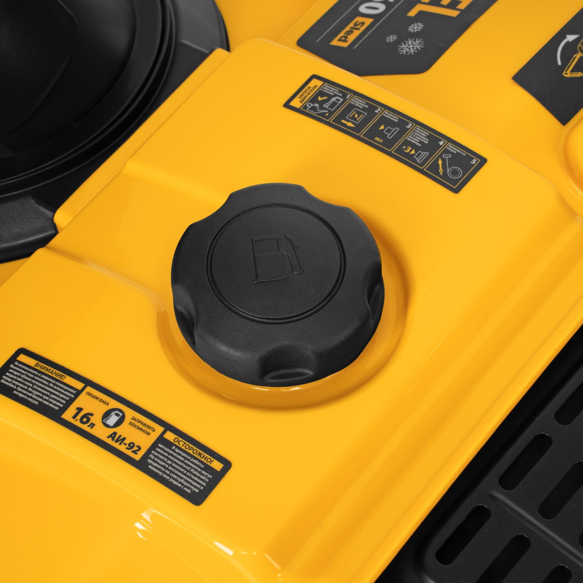 Наличие клапана для сброса давления Бензиновая снегоуборочная машина SB 460 Sled, 99cc, лыжи ручной старт Denzel