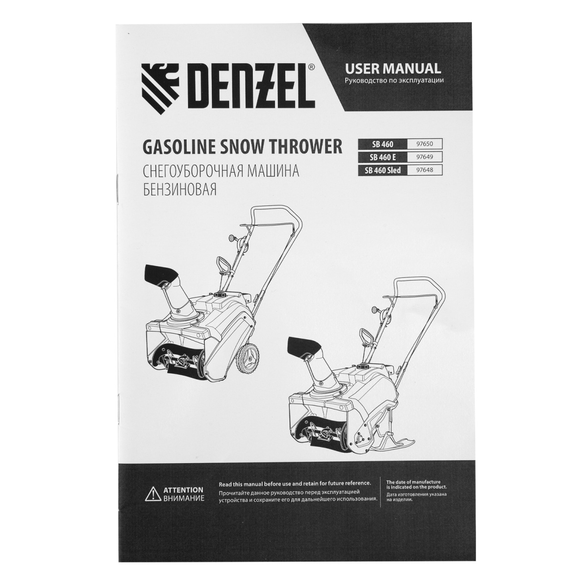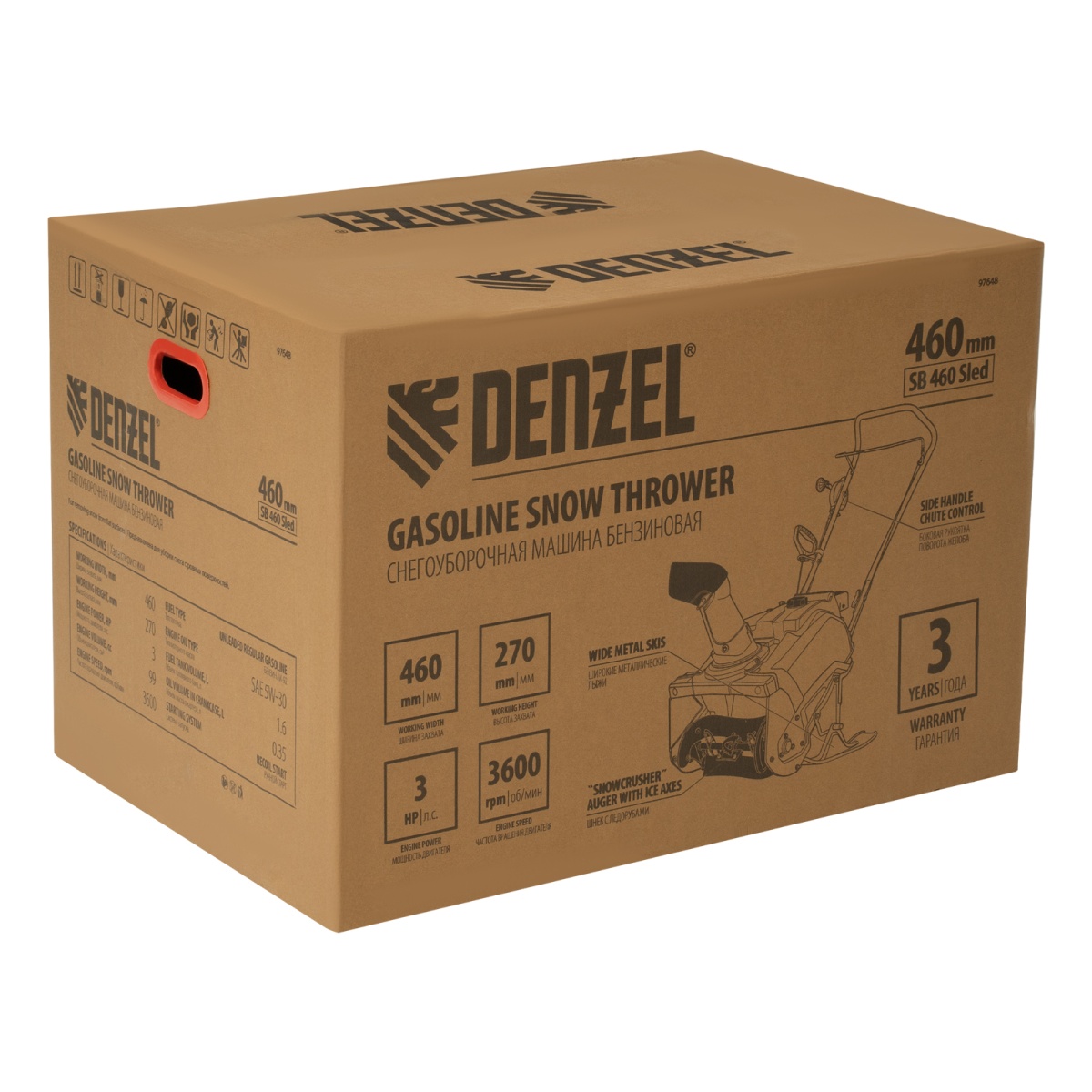 Купить Бензиновая снегоуборочная машина SB 460 Sled, 99cc, лыжи ручной старт Denzel V506 по лучшей цене с доставкой - интернет магазин №1 в России