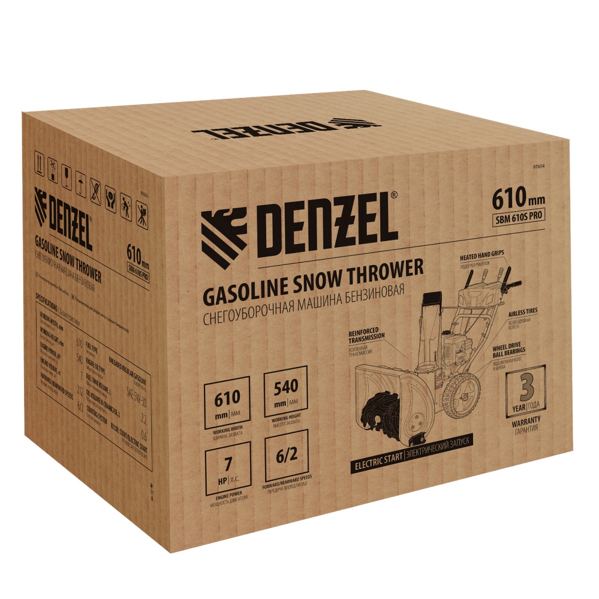 Купить Бензиновая снегоуборочная машина SBM 610S PRO, 212 cc, электростартер, фара, обогрев Denzel V512 по лучшей цене с доставкой - интернет магазин №1 в России