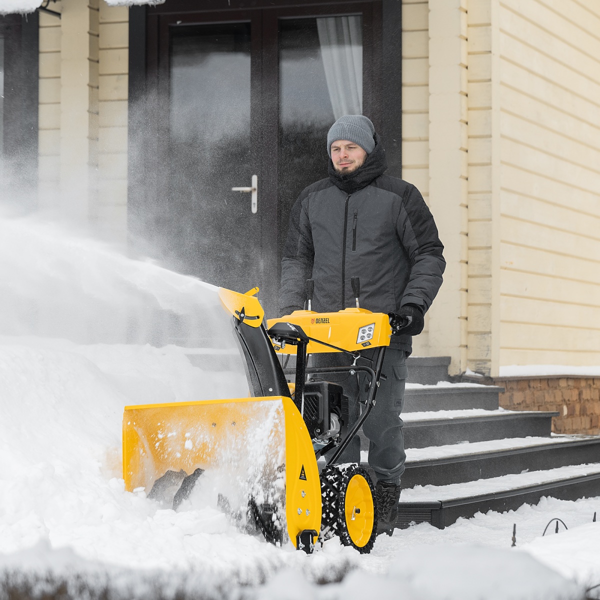 Бензиновая снегоуборочная машина SBM 610S PRO, 212 cc, электростартер, фара, обогрев Denzel
