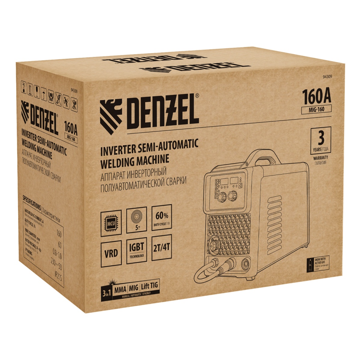 Купить Аппарат инвертор. полуавтомат. сварки MIG-160, 160 А, ПВ 60%, катушка 5 кг// Denzel V478 по лучшей цене с доставкой - интернет магазин №1 в России
