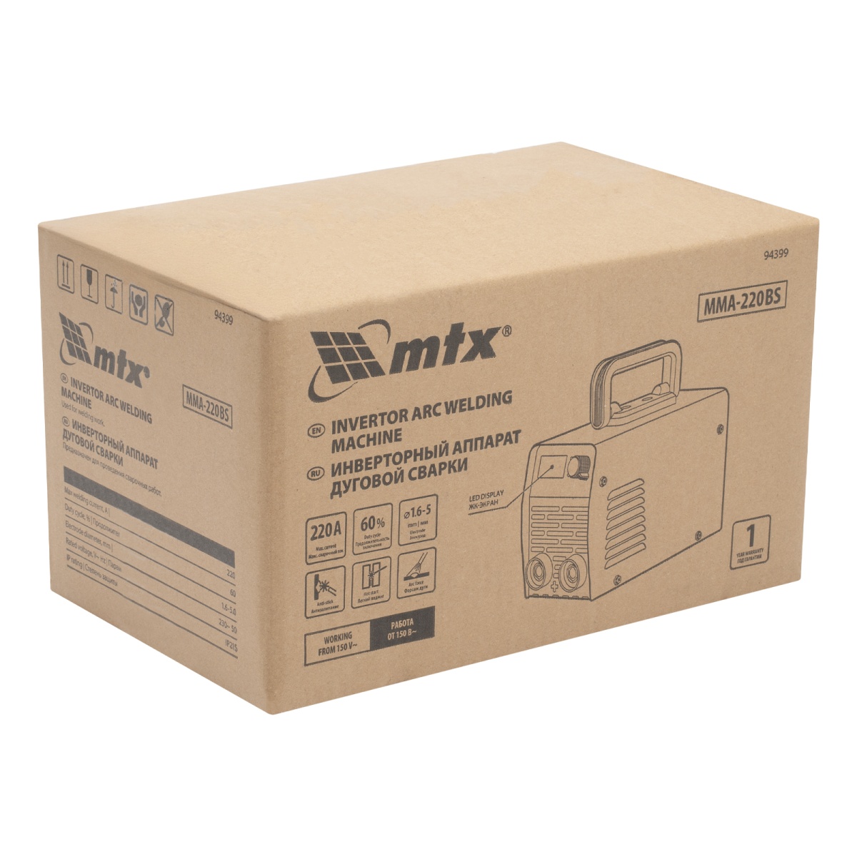 Купить Инверторный аппарат дуговой сварки MMA-220BS, 220 А, ПВ 60% MTX V1946 по лучшей цене с доставкой - интернет магазин №1 в России