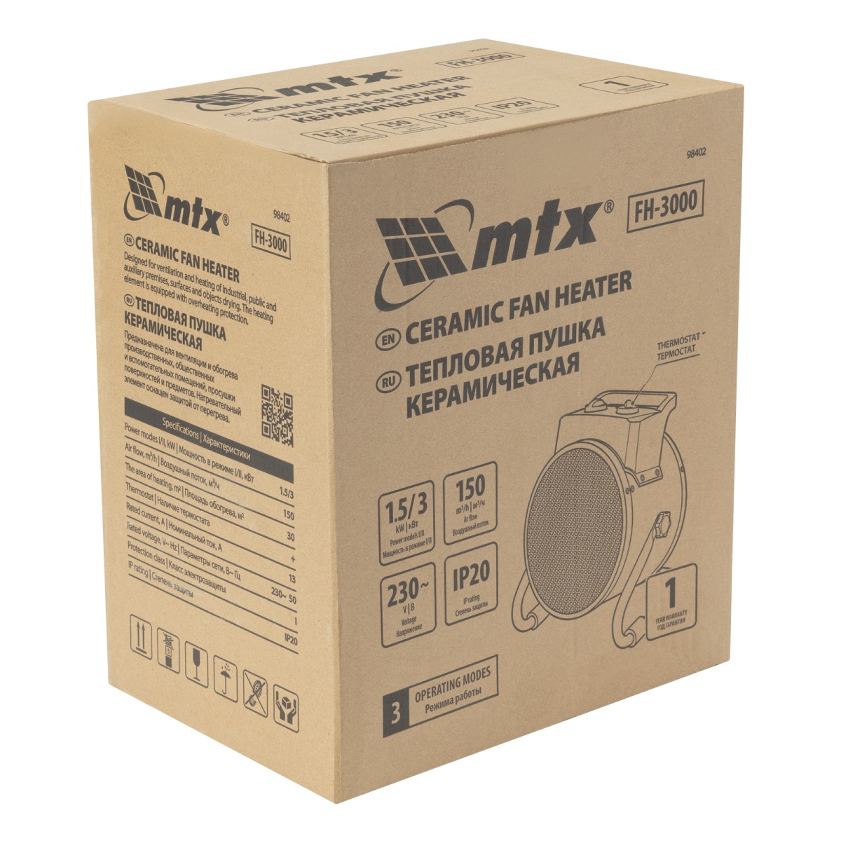 Купить Тепловая пушка керамическая FH-3000, 3 кВт, 3 режима, термостат MTX V7079 по лучшей цене с доставкой - интернет магазин №1 в России