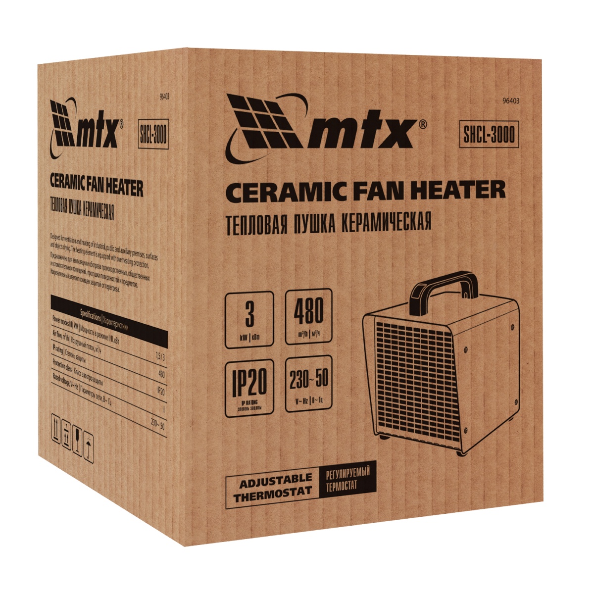 Тепловая пушка керамическая SHCL-3000, квадратная, 230 В, 480 м3/ч, 1/3 кВт// MTX