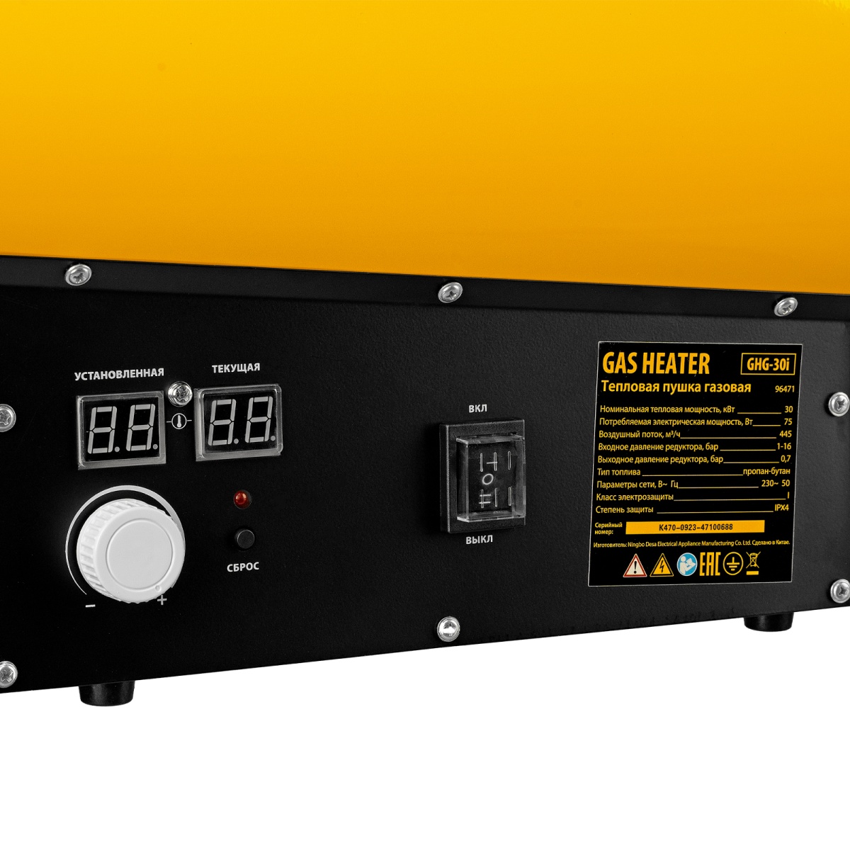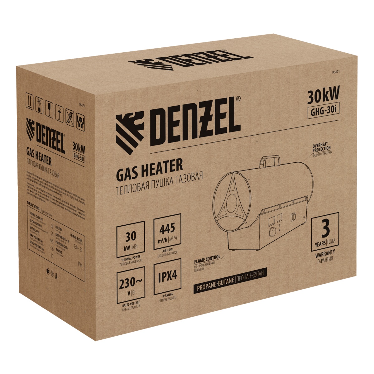 Купить Газовая тепловая пушка GHG-30i, 30 кВт, цифровой термостат, пропан-бутан Denzel V1269 по лучшей цене с доставкой - интернет магазин №1 в России