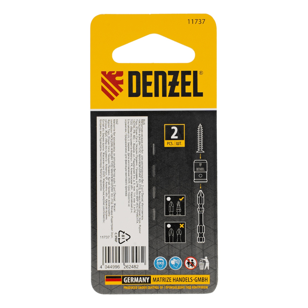Наличие клапана для сброса давления Магнитная насадка для бит, для шестигранных бит, 2 шт Denzel