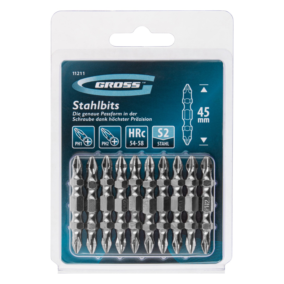 Бита двухсторонняя, PH2-PH1 х 45 мм, сталь S2, 10 шт. Gross