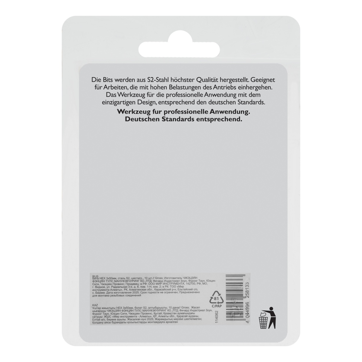 Бита HEX 3х50мм, сталь S2, шестигр., 10 шт. Gross