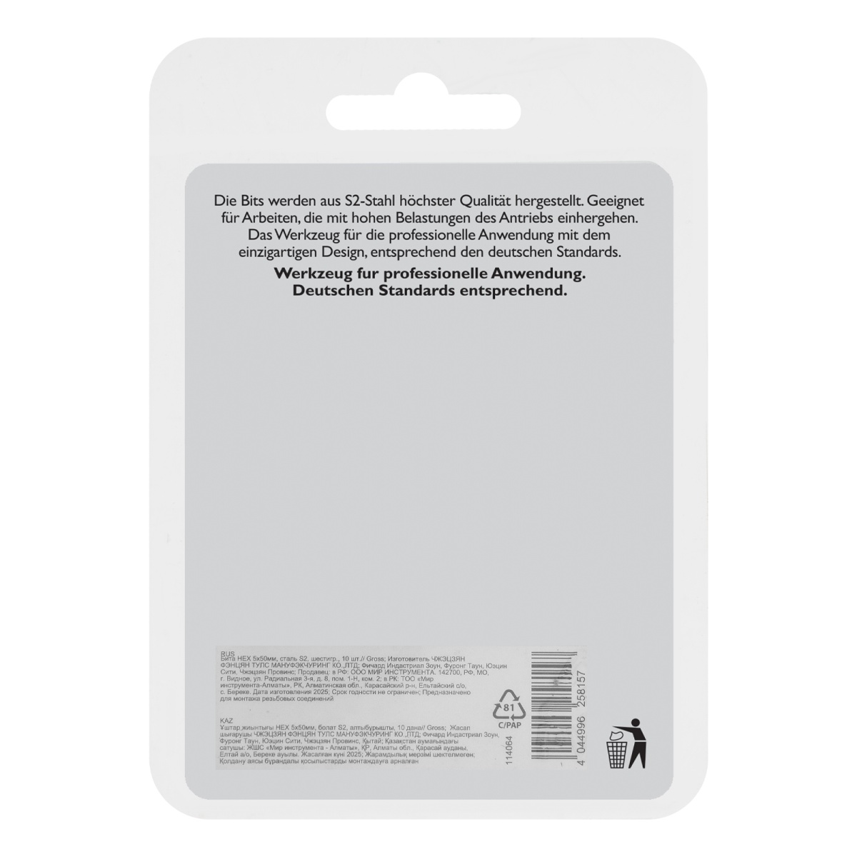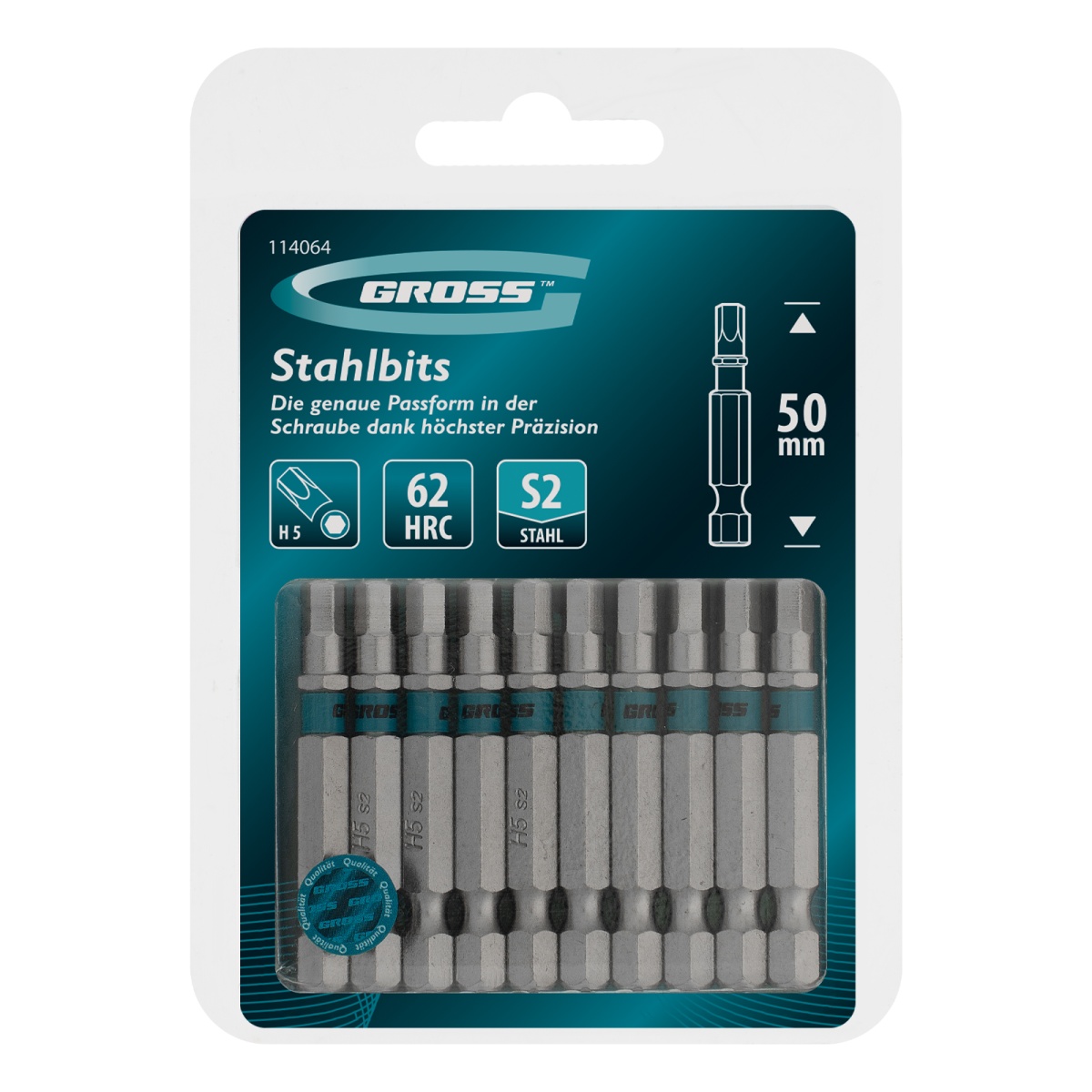 Бита HEX 5х50мм, сталь S2, шестигр., 10 шт. Gross