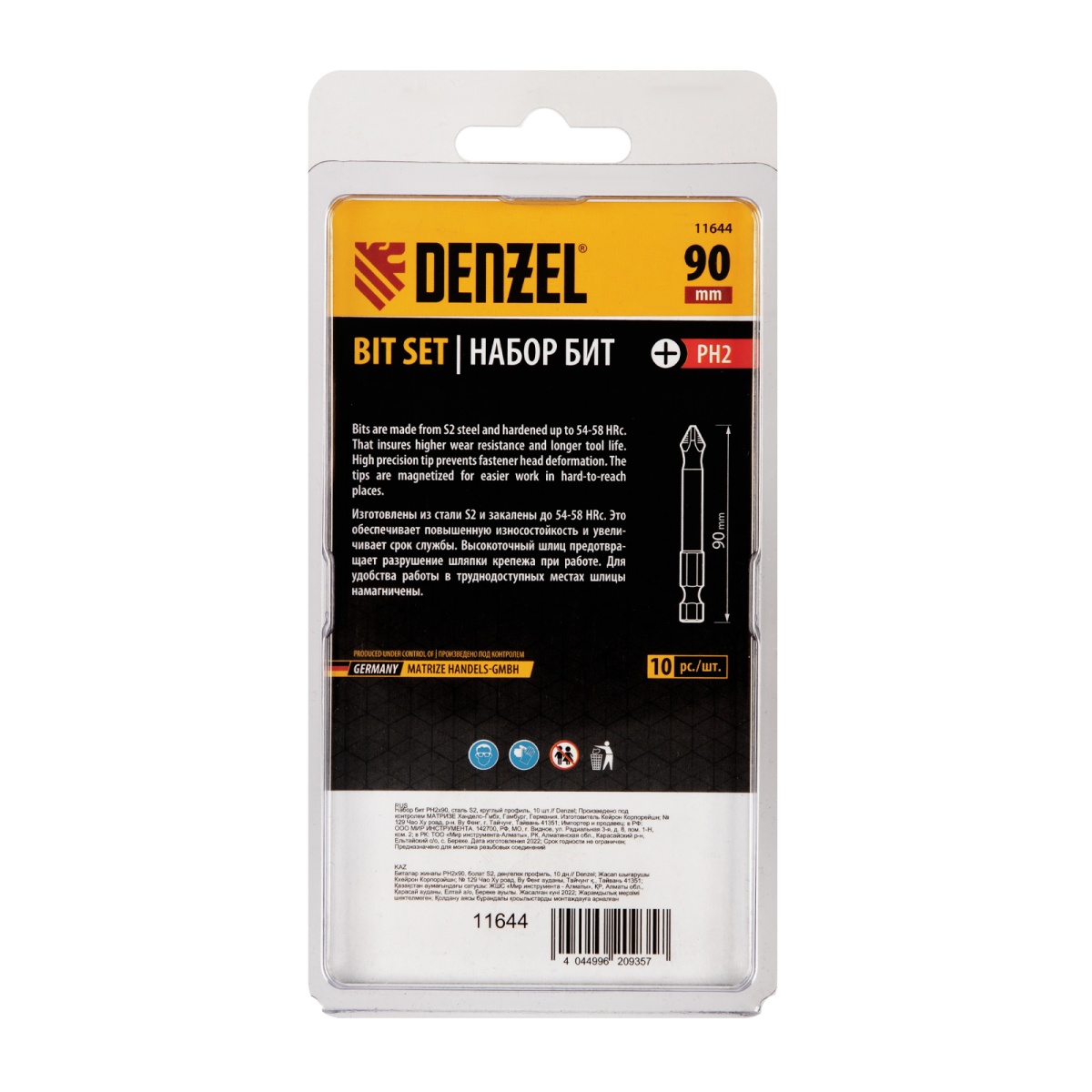 Купить Бита PH2х90, сталь S2, цилиндр., 10 шт. Е 6,3 Denzel V565 по лучшей цене с доставкой - интернет магазин №1 в России
