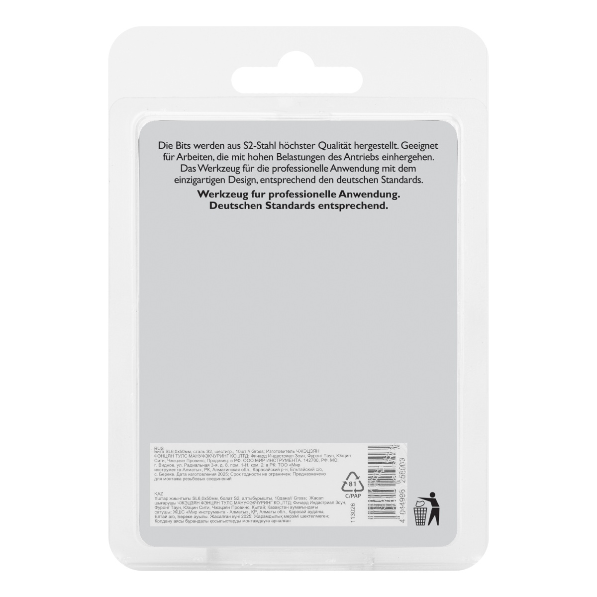 Бита SL6,0х50мм, сталь S2, шестигр., 10 шт. Gross