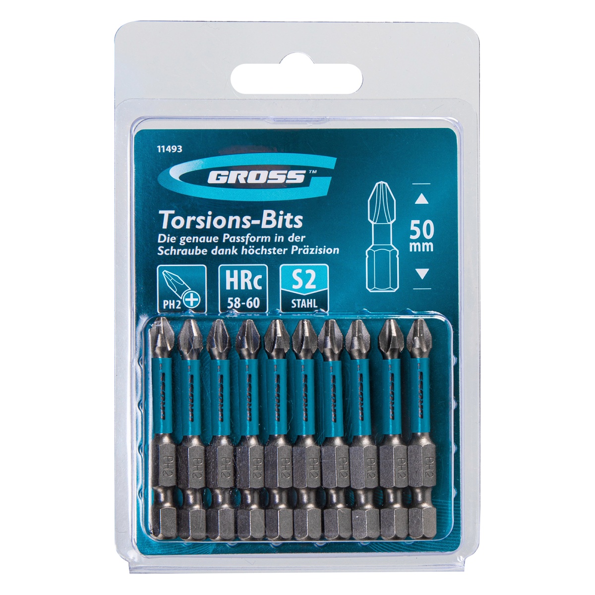 Бита торсионная PH2 x 50 мм, для ударных шуруповертов, 10 шт. Gross