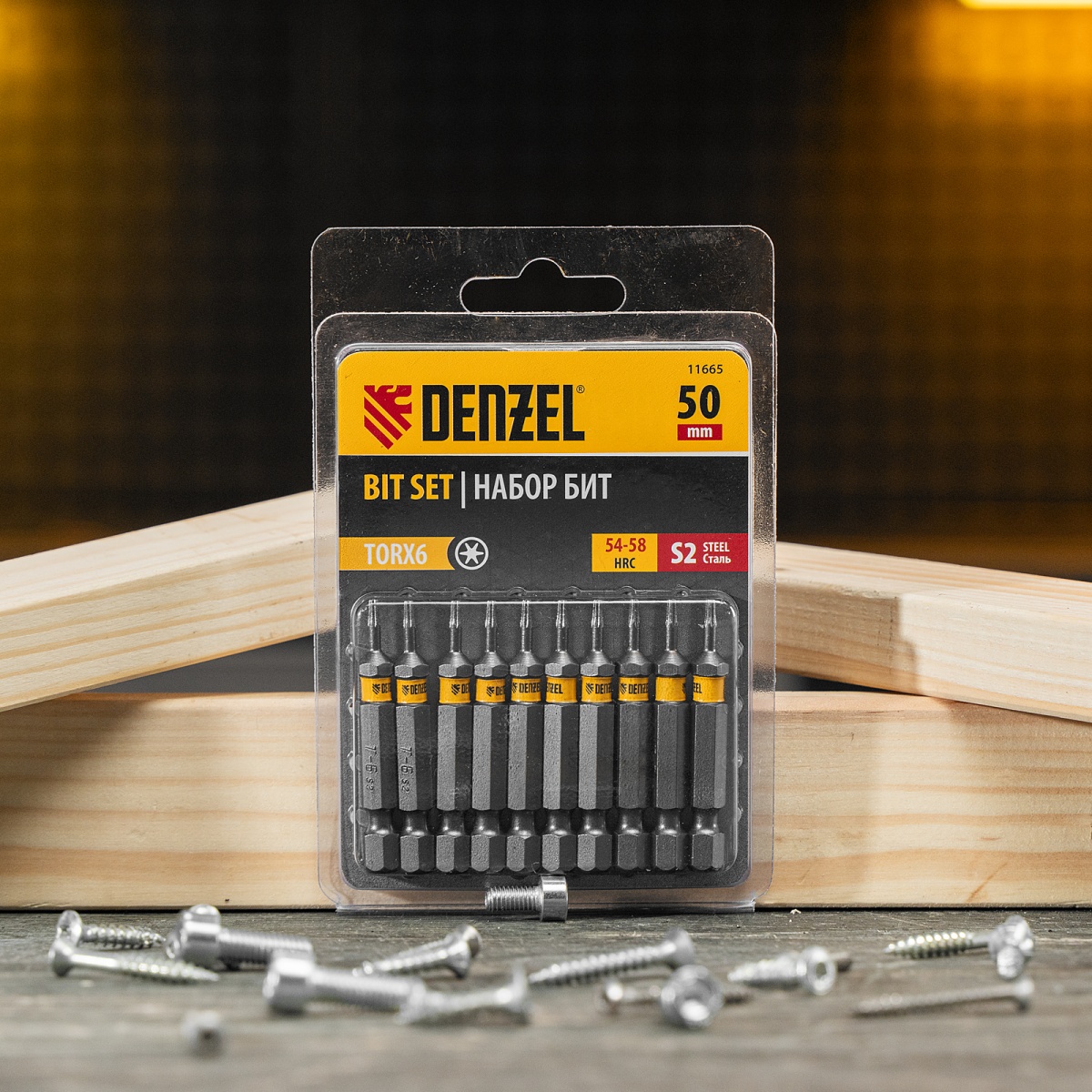 Бита TX 6х50, сталь S2, шестигранный профиль, 10 шт. Е 6,3 Denzel