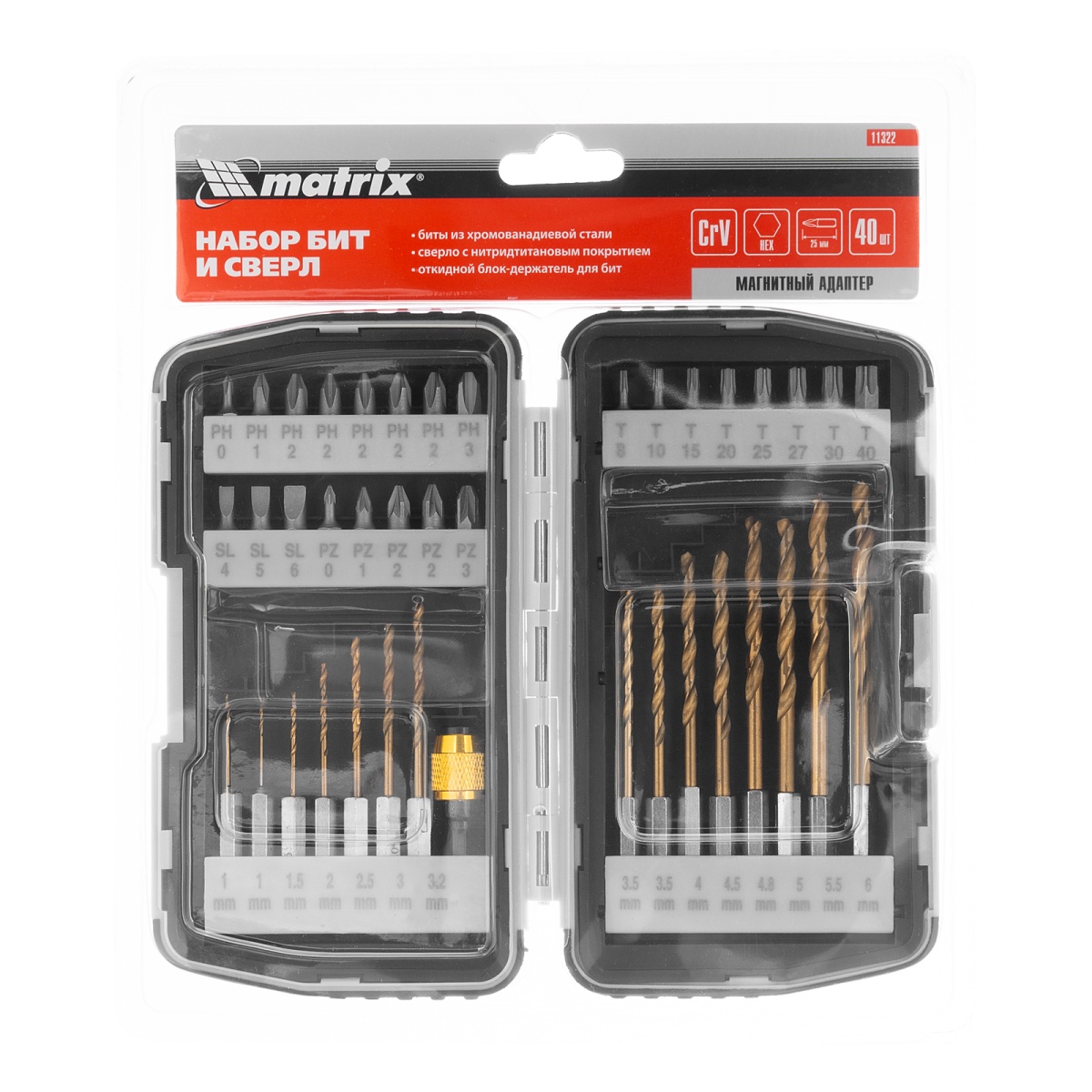 Набор бит и сверл, магнитный адаптер, CrV, пластиковый кейс, 40 шт. Matrix