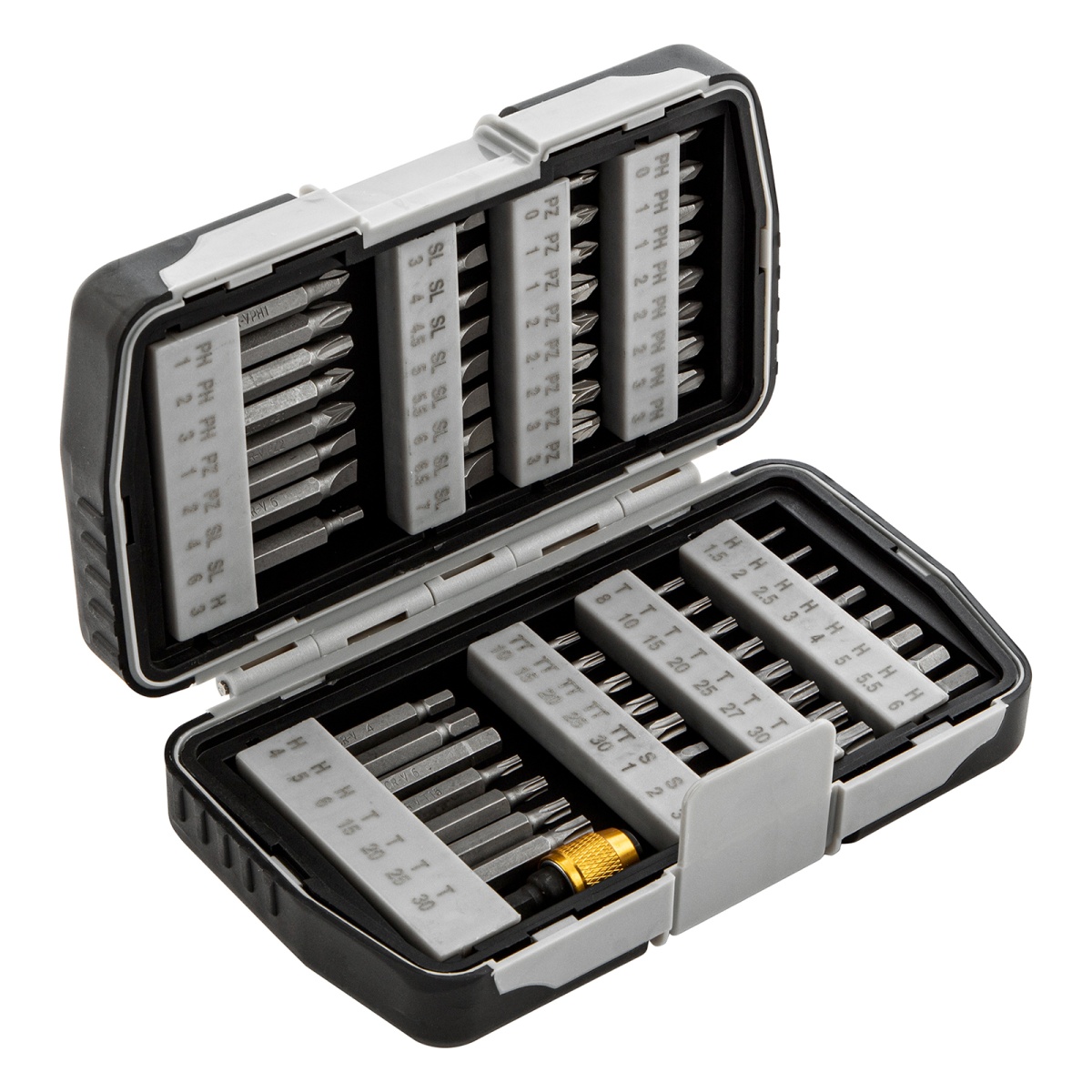 Наличие клапана для сброса давления Набор бит, магнитный адаптер, CrV, пластиковый кейс, 64 шт. Matrix