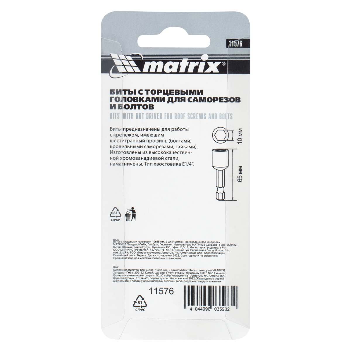 Купить Биты с торцевыми головками 10 мм, 65 мм, 2 шт. Matrix V640 по лучшей цене с доставкой - интернет магазин №1 в России