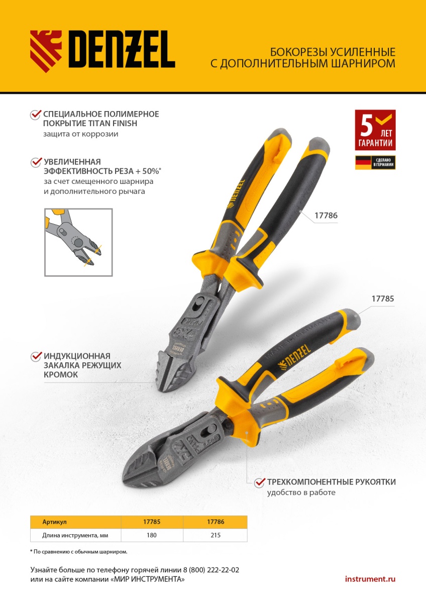 Купить Бокорезы 180 мм, усиленные, трехкомпонентные рукоятки Denzel V656 по лучшей цене с доставкой - интернет магазин №1 в России
