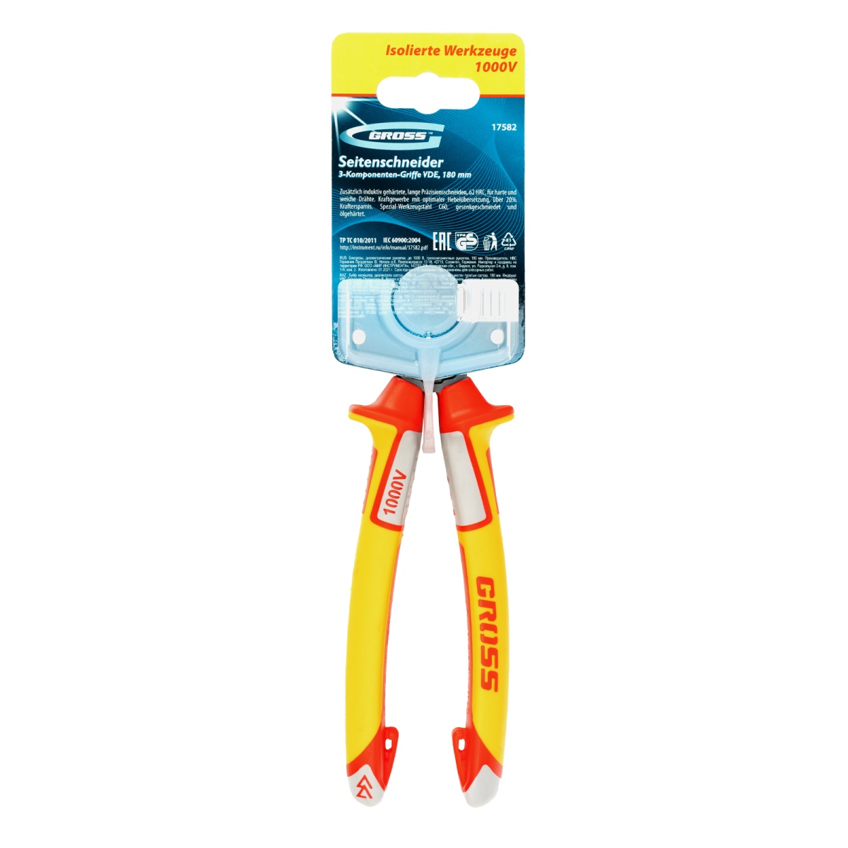 Купить Бокорезы, диэлектрические рукоятки, до 1000 В, трехкомпонентные рукоятки, 180 мм Gross V694 по лучшей цене с доставкой - интернет магазин №1 в России