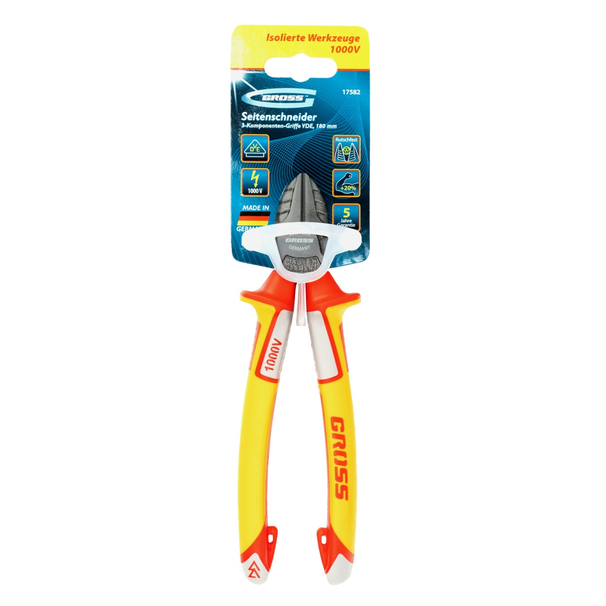 Бокорезы, диэлектрические рукоятки, до 1000 В, трехкомпонентные рукоятки, 180 мм Gross