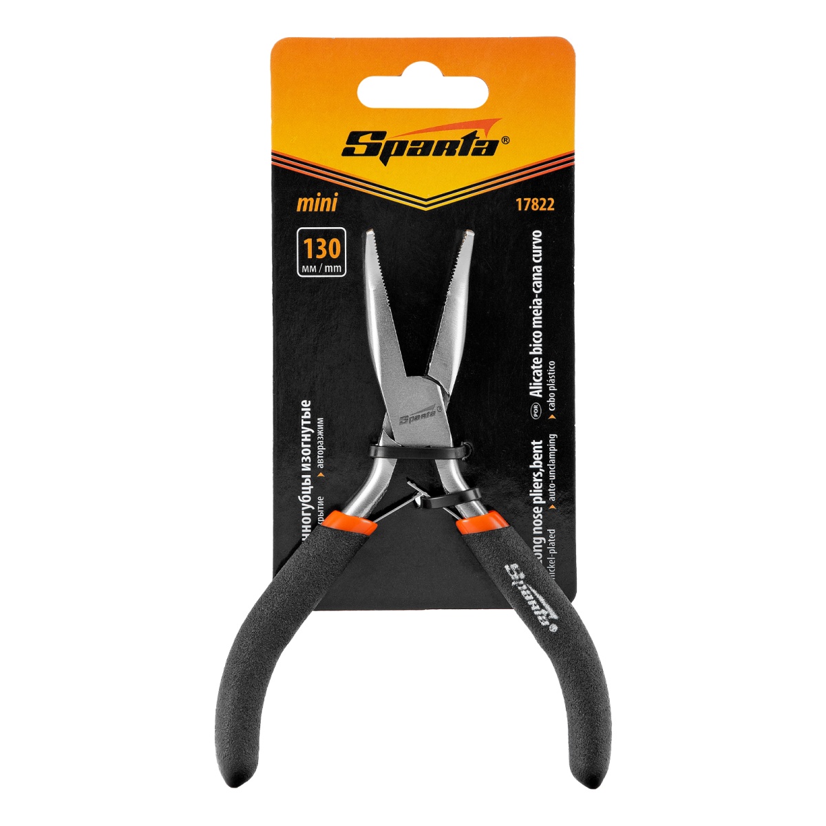 Купить Длинногубцы изогнутые Mini, 130 мм, никелированные, авторазжим Sparta V1697 по лучшей цене с доставкой - интернет магазин №1 в России