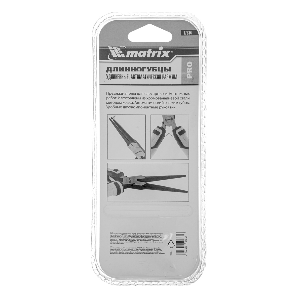 Длинногубцы Mini удлиненные, 150 мм, авторазжим, Pro Matrix