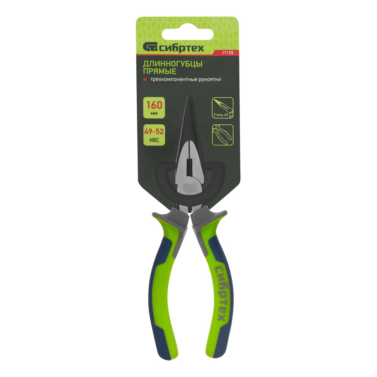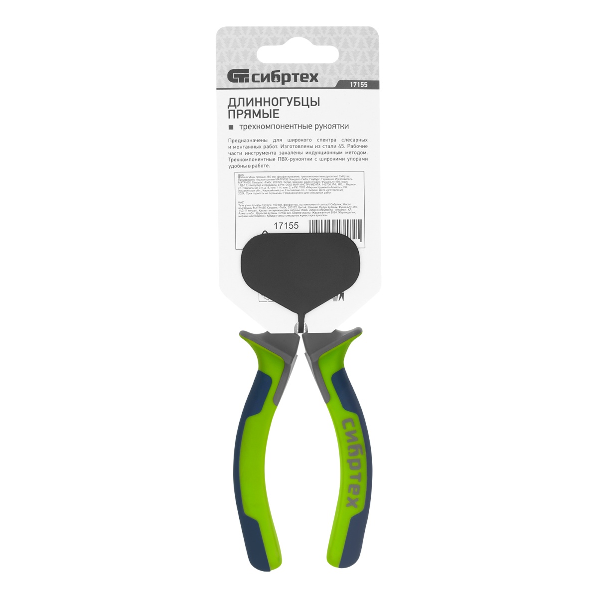 Купить Длинногубцы прямые 160 мм, фосфатирование, трехкомпонентные рукоятки Сибртех V1702 по лучшей цене с доставкой - интернет магазин №1 в России