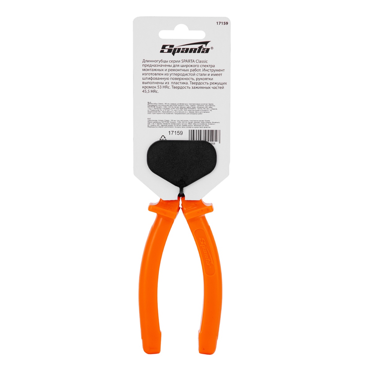 Купить Длинногубцы прямые Classic, 180 мм, шлифованные, пластмассовые рукоятки Sparta V1711 по лучшей цене с доставкой - интернет магазин №1 в России