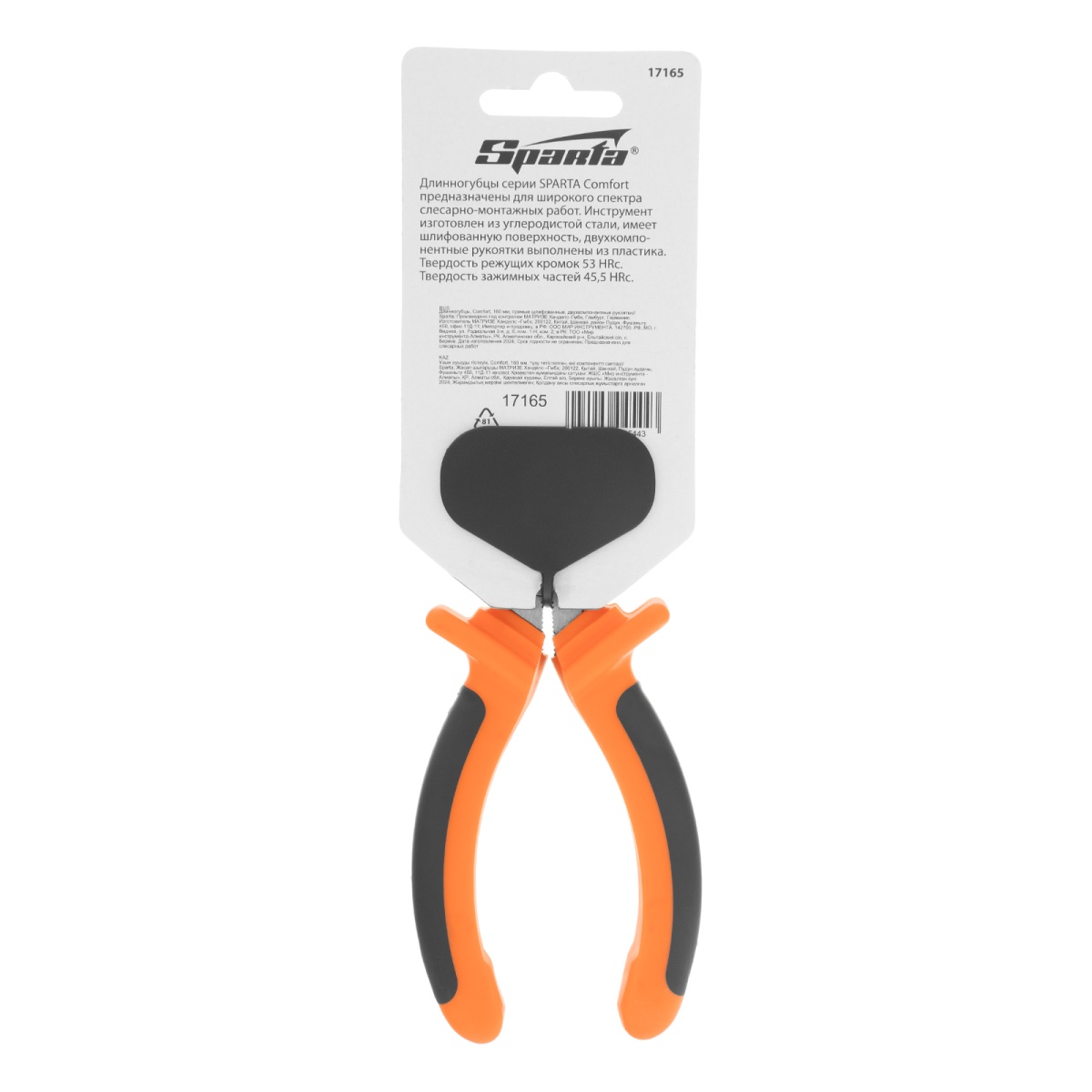 Купить Длинногубцы прямые Comfort, 160 мм ,шлифованные, двухкомпонентные рукоятки Sparta V1713 по лучшей цене с доставкой - интернет магазин №1 в России