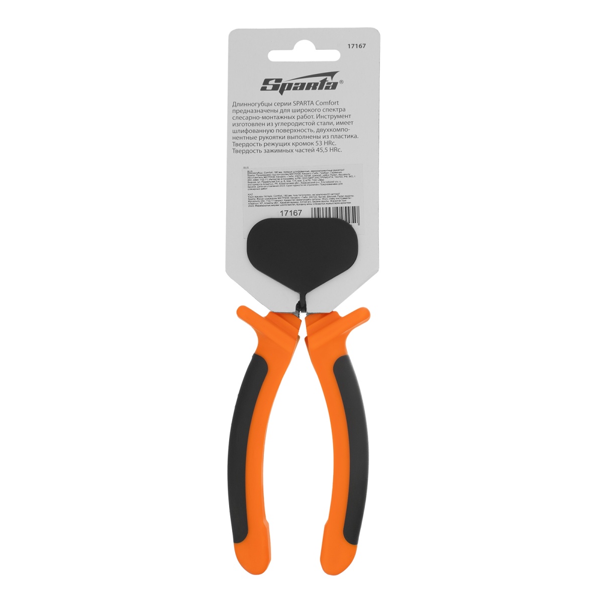 Купить Длинногубцы прямые Comfort, 180 мм, шлифованные, двухкомпонентные рукоятки Sparta V1714 по лучшей цене с доставкой - интернет магазин №1 в России