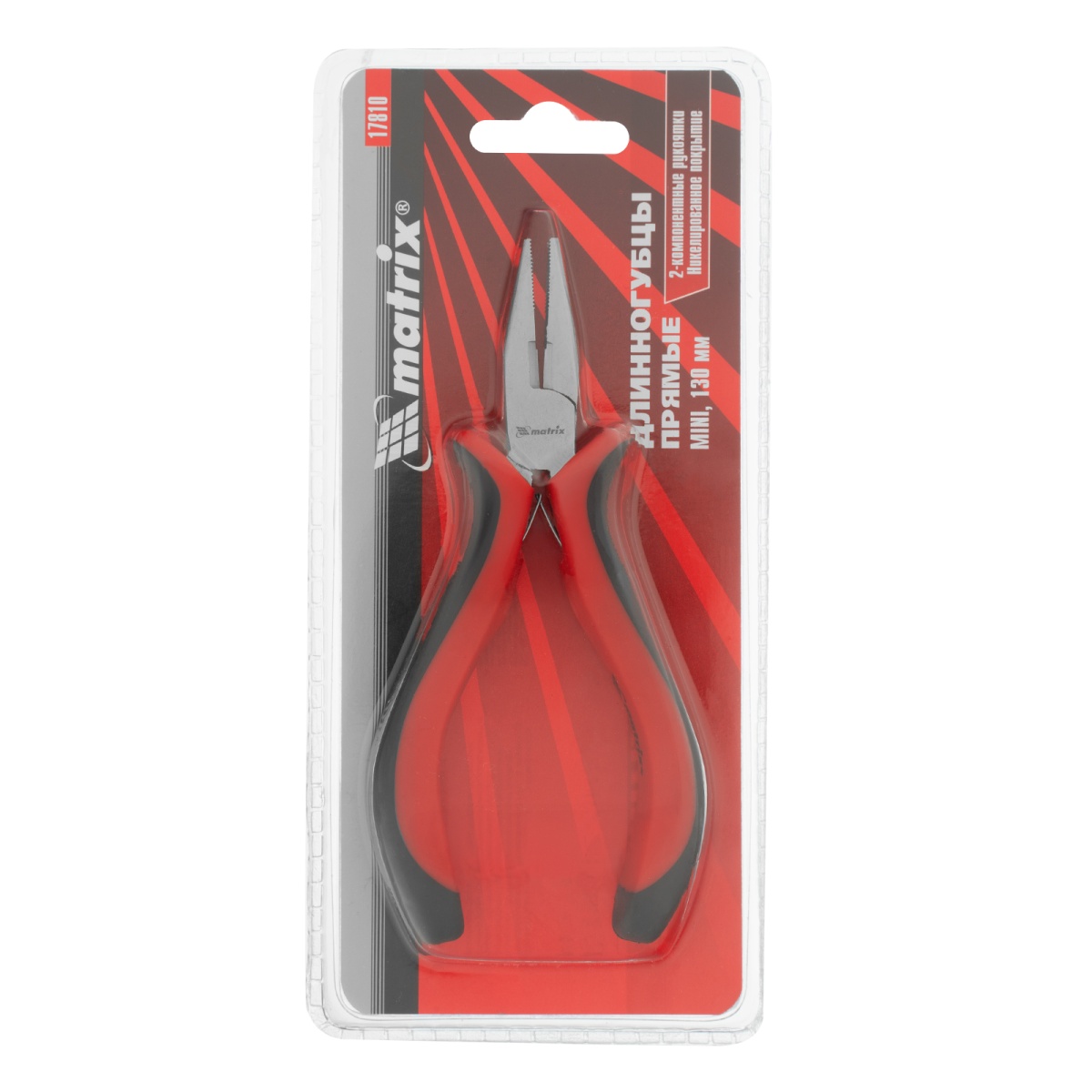 Длинногубцы прямые Mini, 130 мм, никелированные, авторазжим, двухкомпонентные рукоятки Matrix