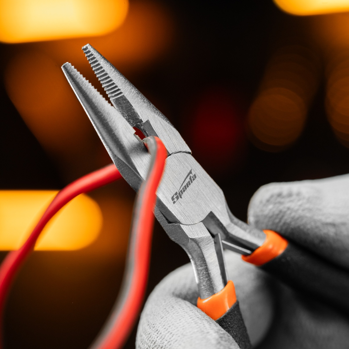Купить Длинногубцы прямые Mini, 130 мм, никелированные, авторазжим Sparta V1720 по лучшей цене с доставкой - интернет магазин №1 в России