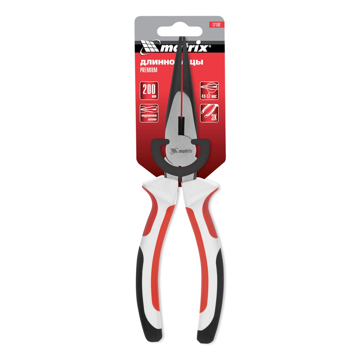 Купить Длинногубцы прямые Premium, 200 мм, трехкомпонентные рукоятки Matrix V1727 по лучшей цене с доставкой - интернет магазин №1 в России